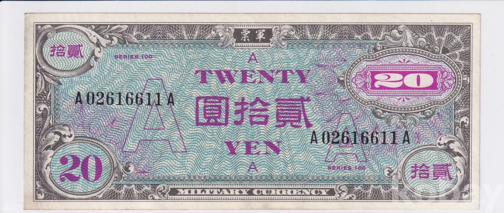 - 군표 모음展 - 1945년 연합군 군표 A권 20엔 미품 (+) - 시리즈 100
