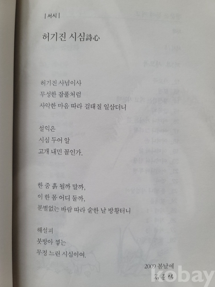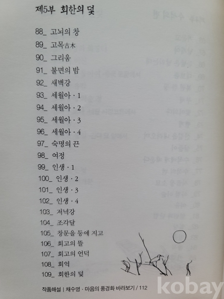 채수영 시인(문학평론가)의 해설. 5부 94편 수록.