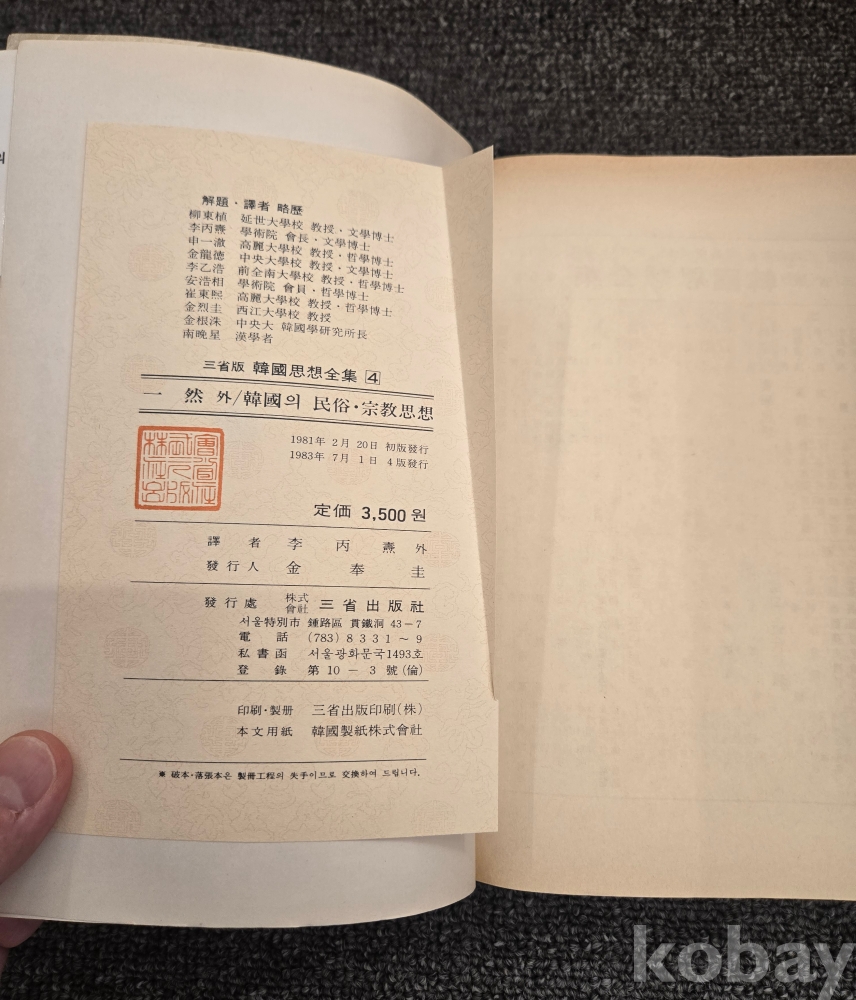 [한국문화, 민속, 종교] 일연 둥, <한국의 민속종교사상>, 삼성출판사, 1983, p. 611, 상태 중급(세로글, 사진참조)