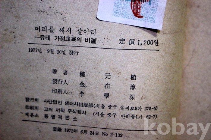 머리를 써서 살아라 (유대인 가정교육의 비밀) - 정원식 著 /1977년샘터사 발행