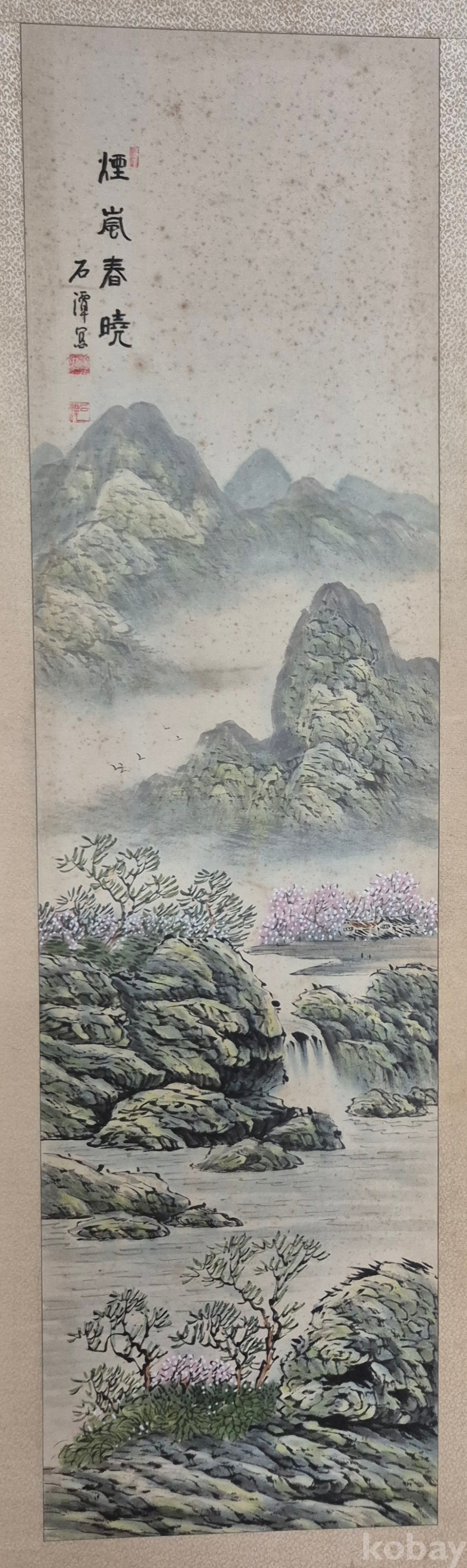 필력 좋은 시원스럽게 잘 그려진 춘경 산수화'이오니 작품 이미지상 수결 및 낙관'등 두루 잘 참조하시고