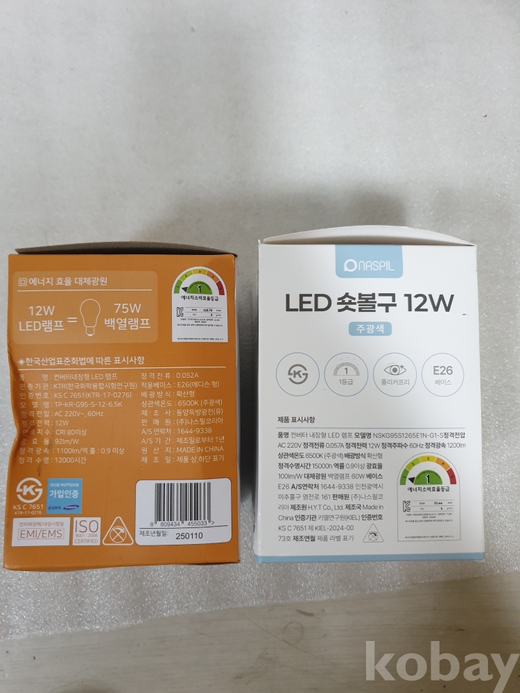 {천원경매} Y-10.0992 LED 볼 전구 2개(박스 파손)
