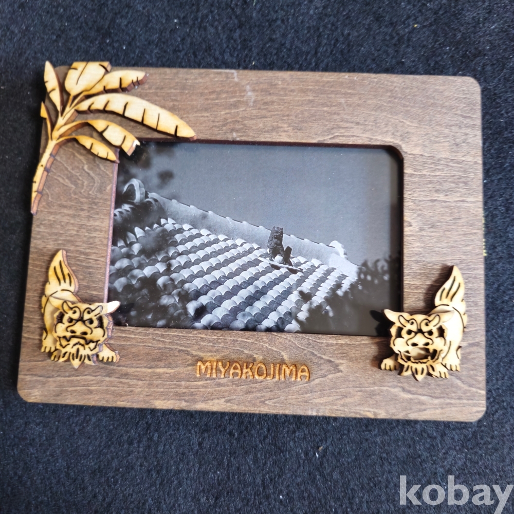 (((인테리어소품/액자))) 오래전 일본 MIYAKOJIMA 관광기념 나무 액자