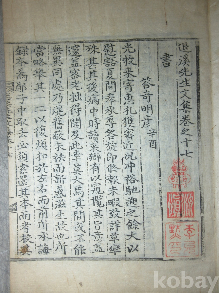 조선시대 목판본 고서적 퇴계 이황선생님의 퇴계선생문집입니다.