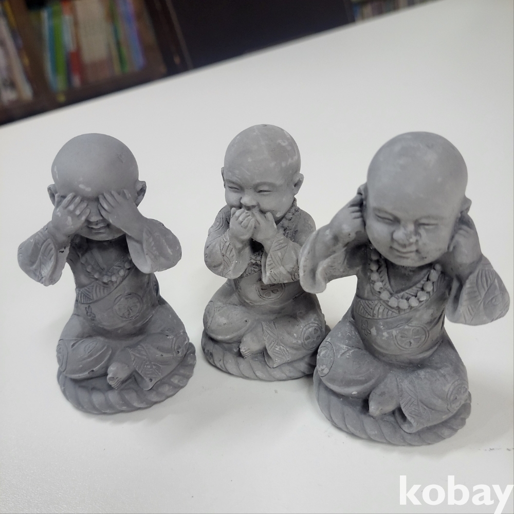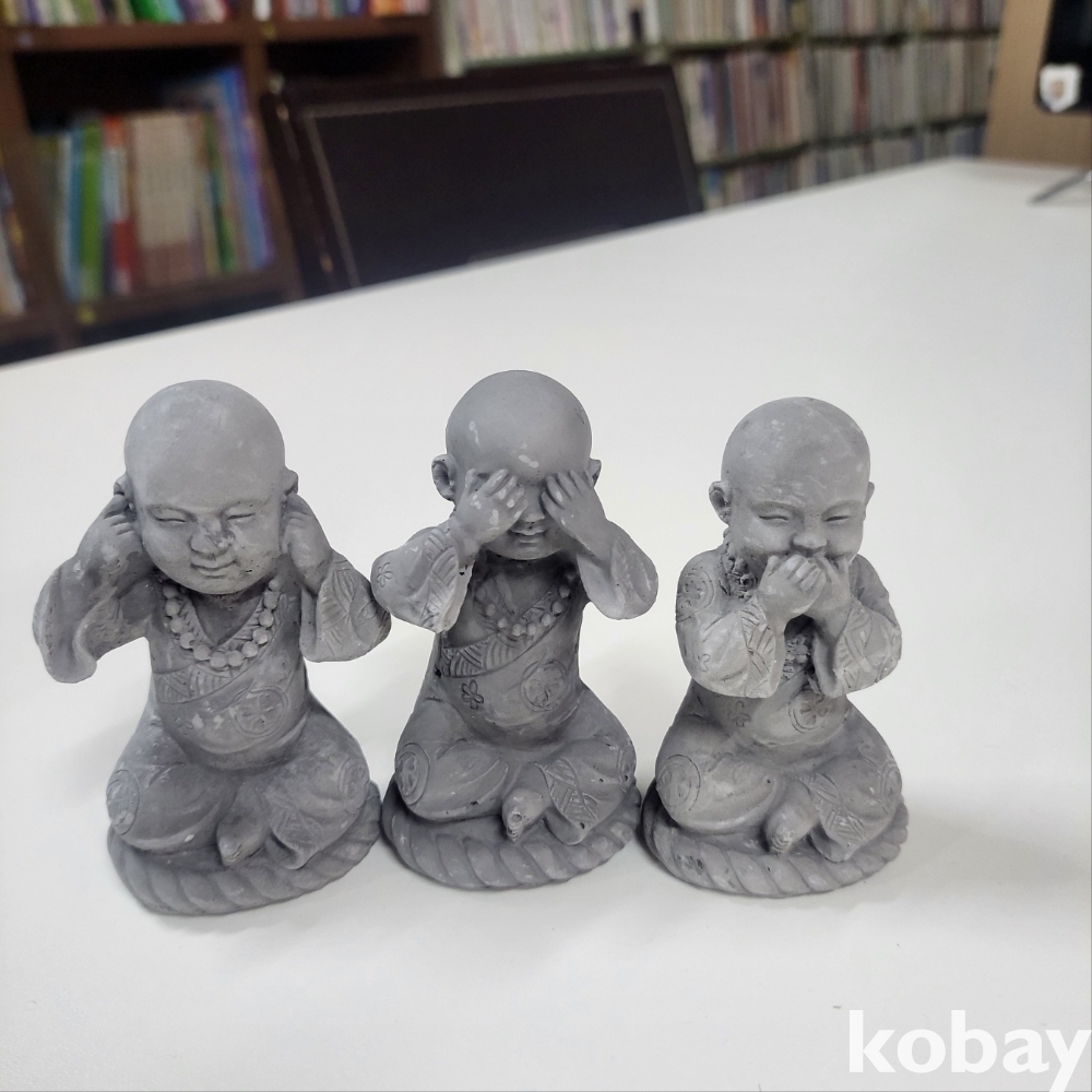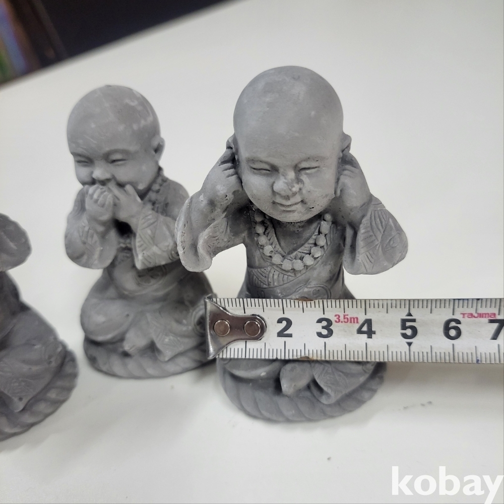 [천원경매] 미니 동자승 3가지 표정 세트 (9cm*4cm) 입니다. 재질은 정확한 판단 어렵습니다.