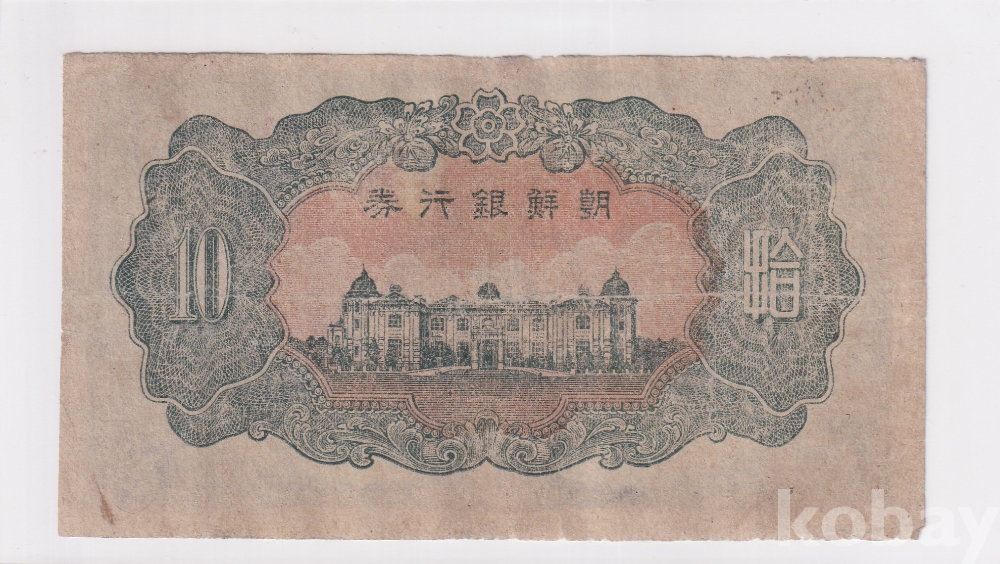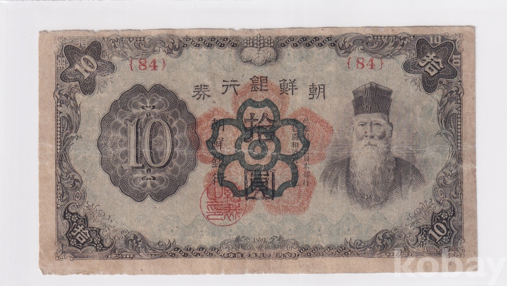 - 조선은행 지폐 모음展 6 - 1944년 갑 십원 - 판번호 84번 무번호권 사용제 지폐