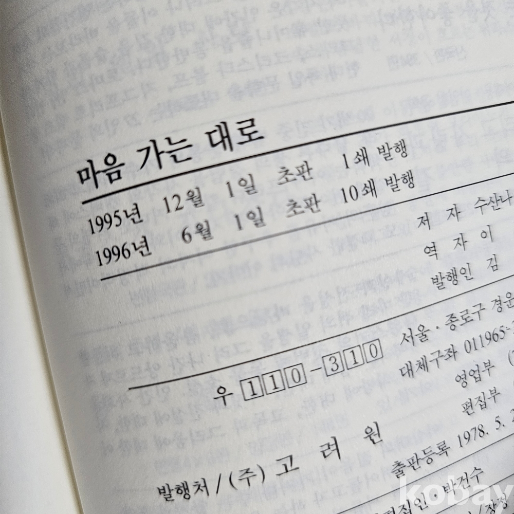 (((천원경매))) (((서적))) 마음가는 대로 - 수산나 타마로 지음 (하드카바) (1995)