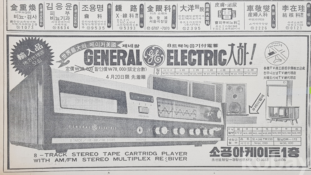 **** 중앙일보/1973년 4월 12일/4면*제네랄 8트랙녹음기 인하! 소공아케이트1층 광고포함