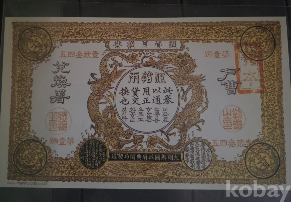 대한민국 최고의 귀물 호조태환권 50냥 참고품