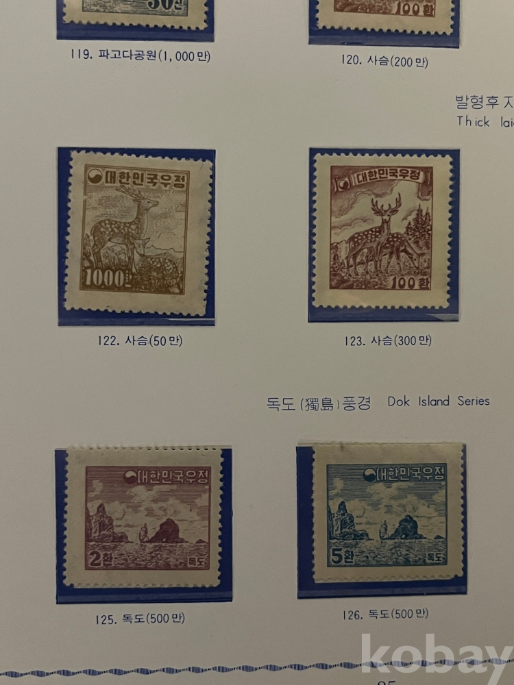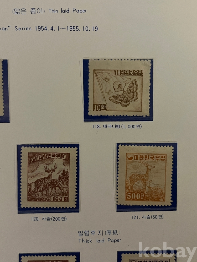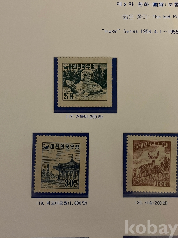 1954~1955년 제2차 대한민국 우정 보통우표 11종 입니다.