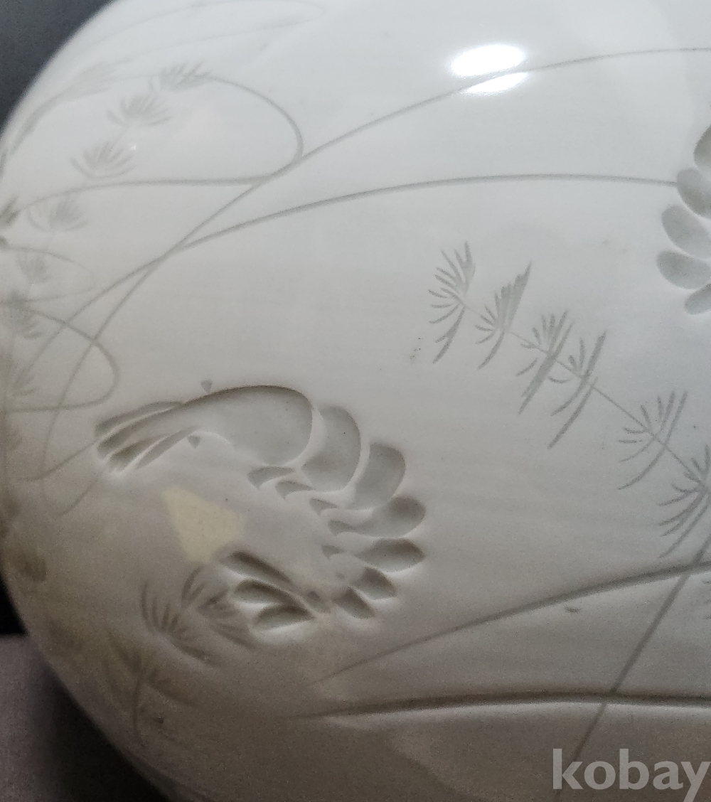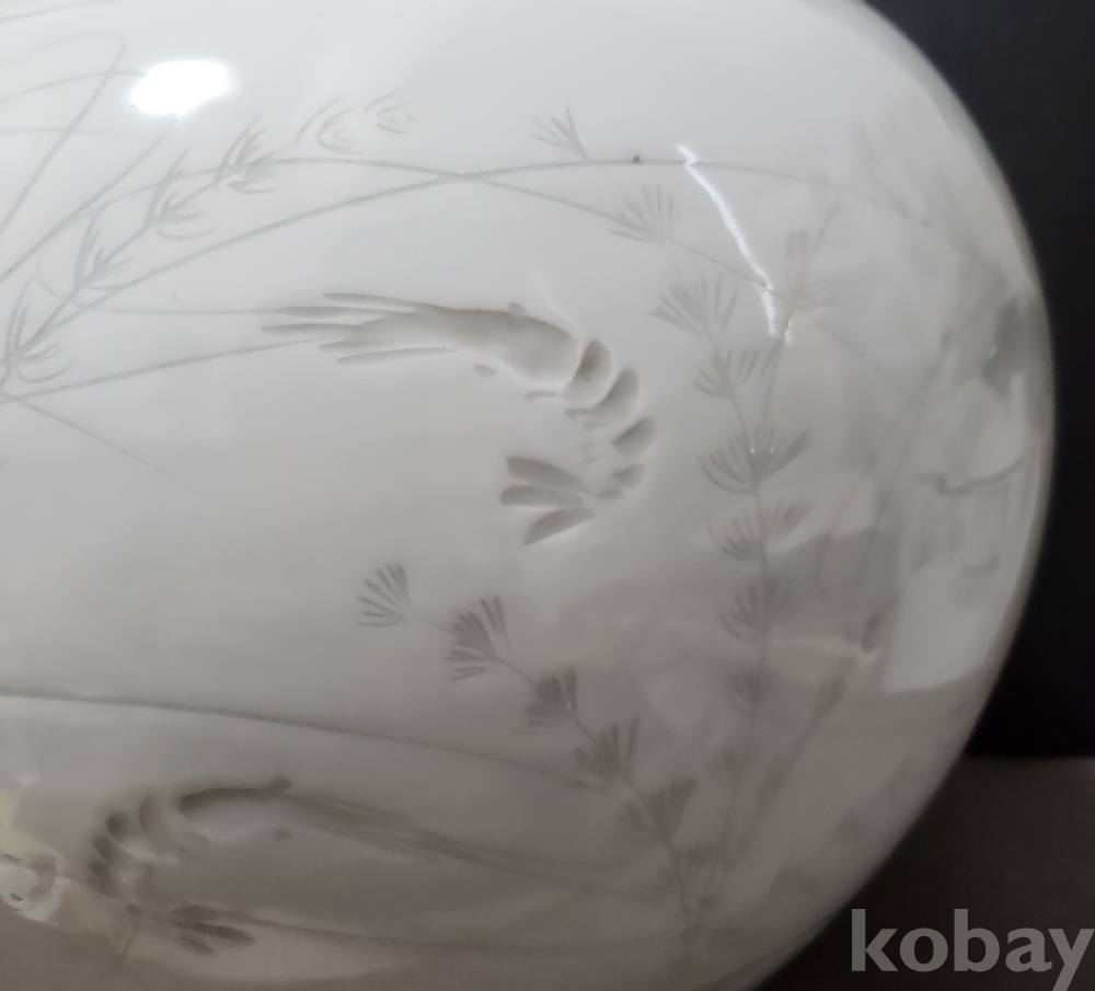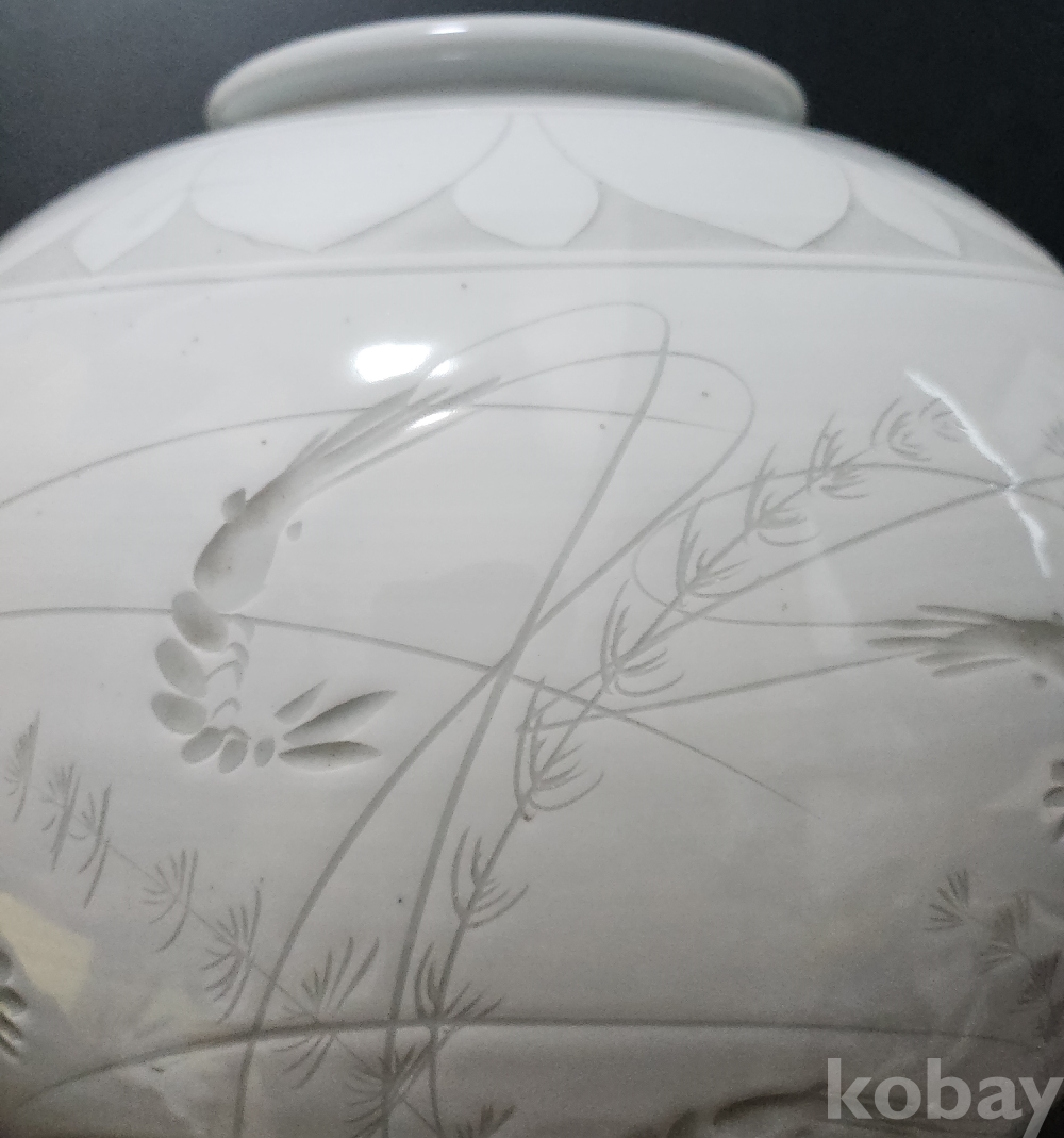 < 1세대 여류 도예가 > 명장 월당(月堂) 이순길(李順吉) 백자음각어해도문호 白磁陰刻魚蟹圖紋壺