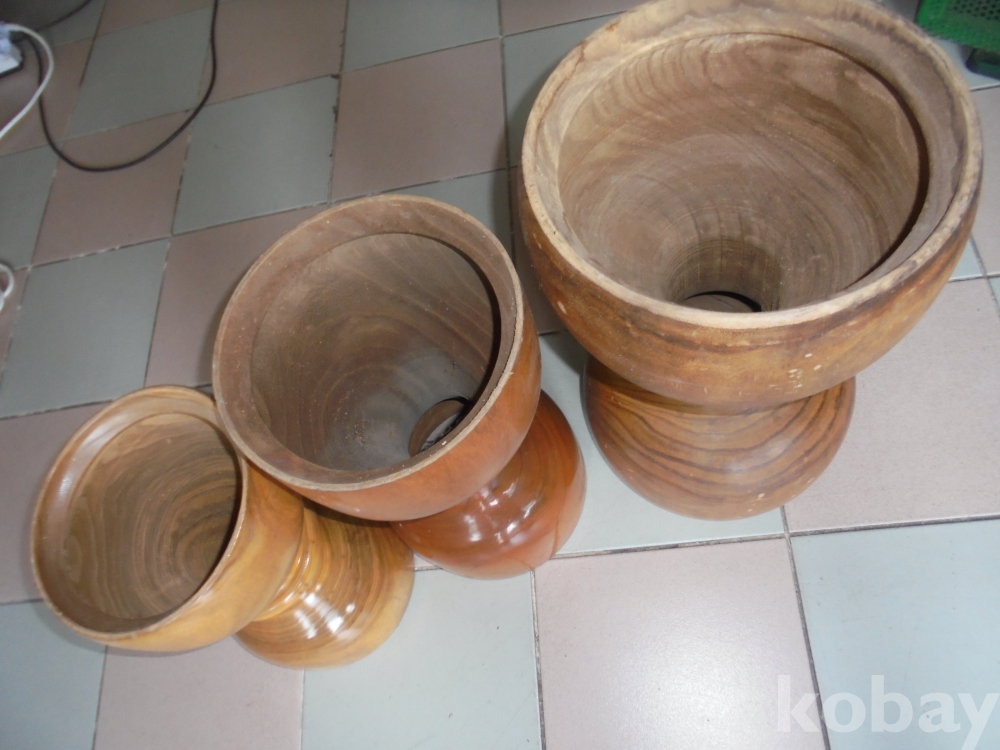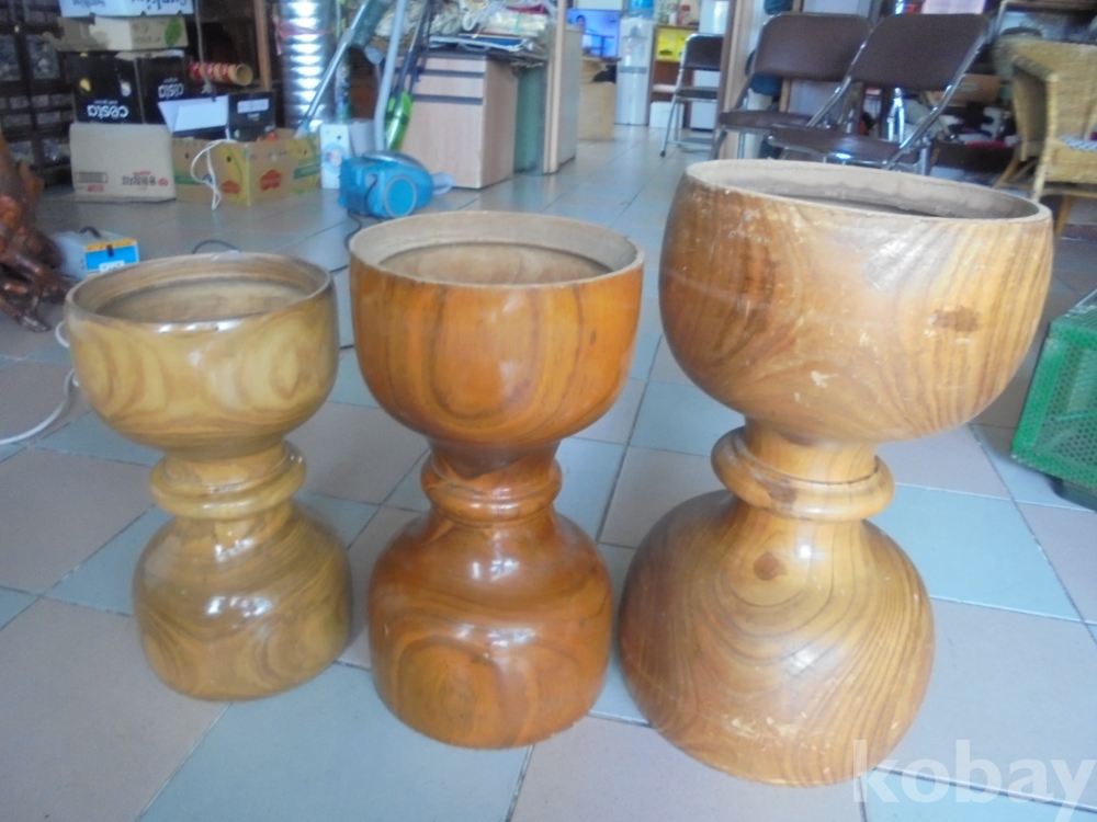 양쪽 치는가죽만 메우면 되는 오래되고 질이들어 울리는소리가 깊은 튼데없는 최고자료가좋은 크고작은 통오동나무 장구틀 3점