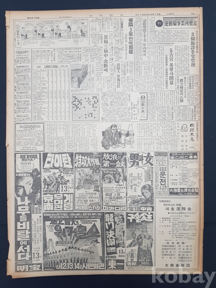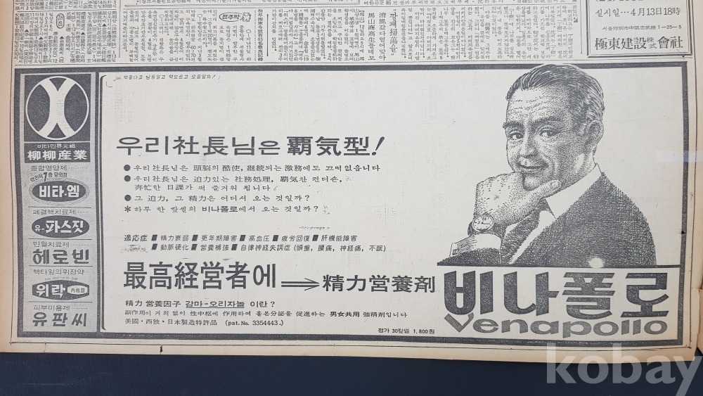 **** 한국일보/1968년 4월 13일/4면*비나폴로 유유제약 광고포함