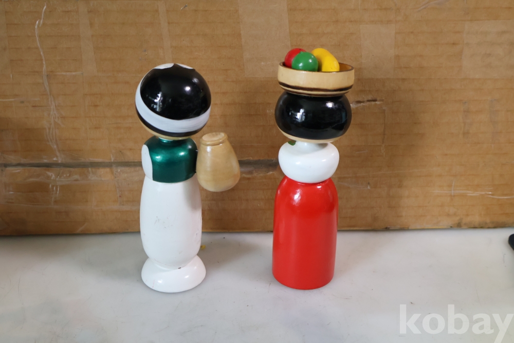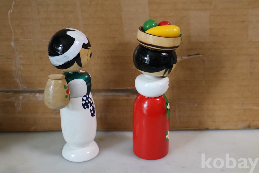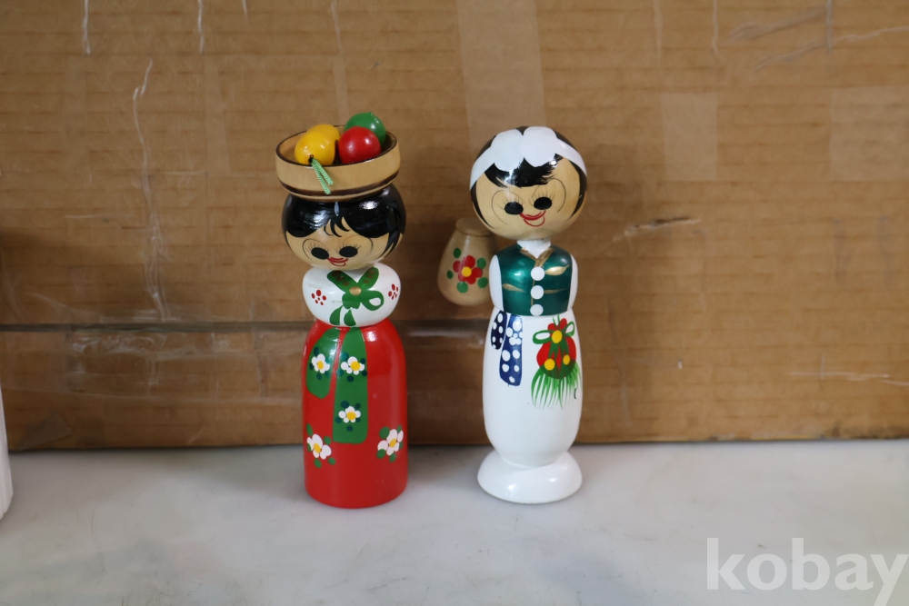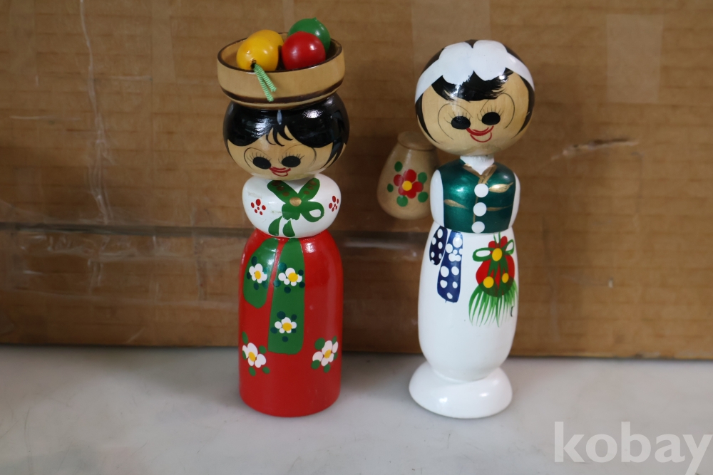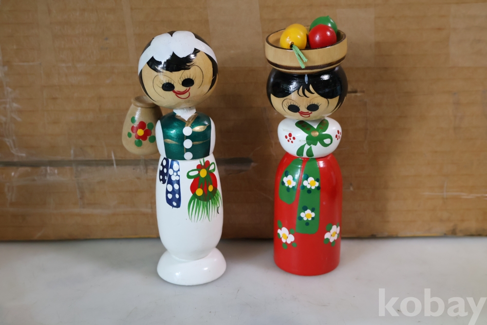 1960 전후의 남녀 목각 인형 임니다 머리 부분은 움직이며 멋진 색감 디자인 등등 아름다운 인형 임니다