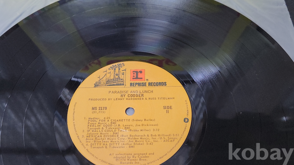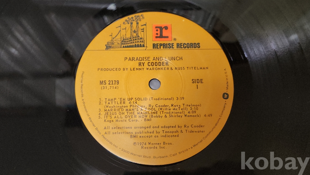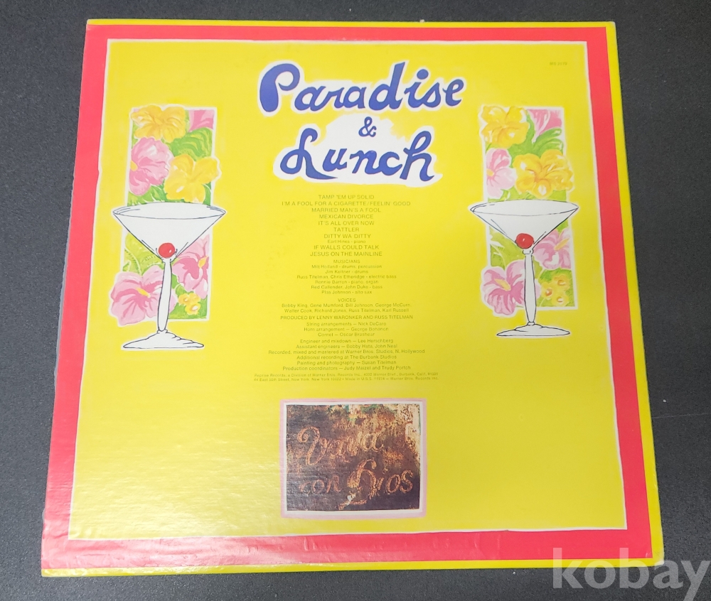 컨트리 블루스 기타의 전설, 라이 쿠더의 명반 "Paradise & Lunch" 앨범입니다.