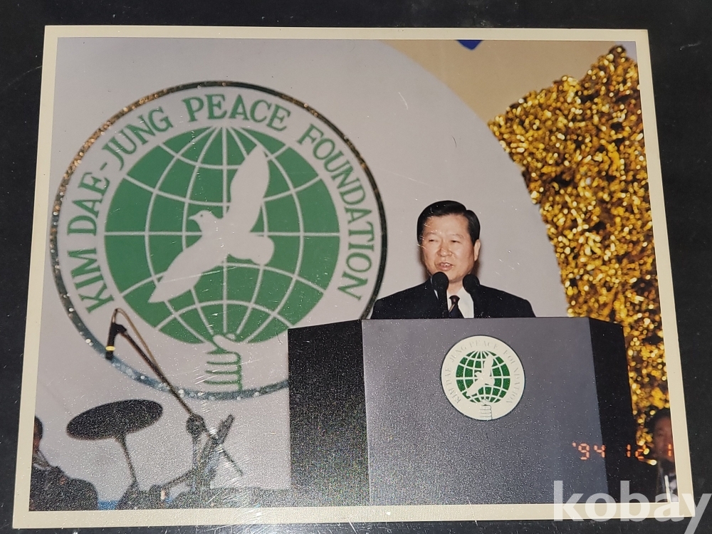 사진은 1994년 12월에 촬영된 것으로, 김대중 평화 재단 관련 행사에서 연설하는 김대중 전 대통령의 모습을 담고 있습니다.