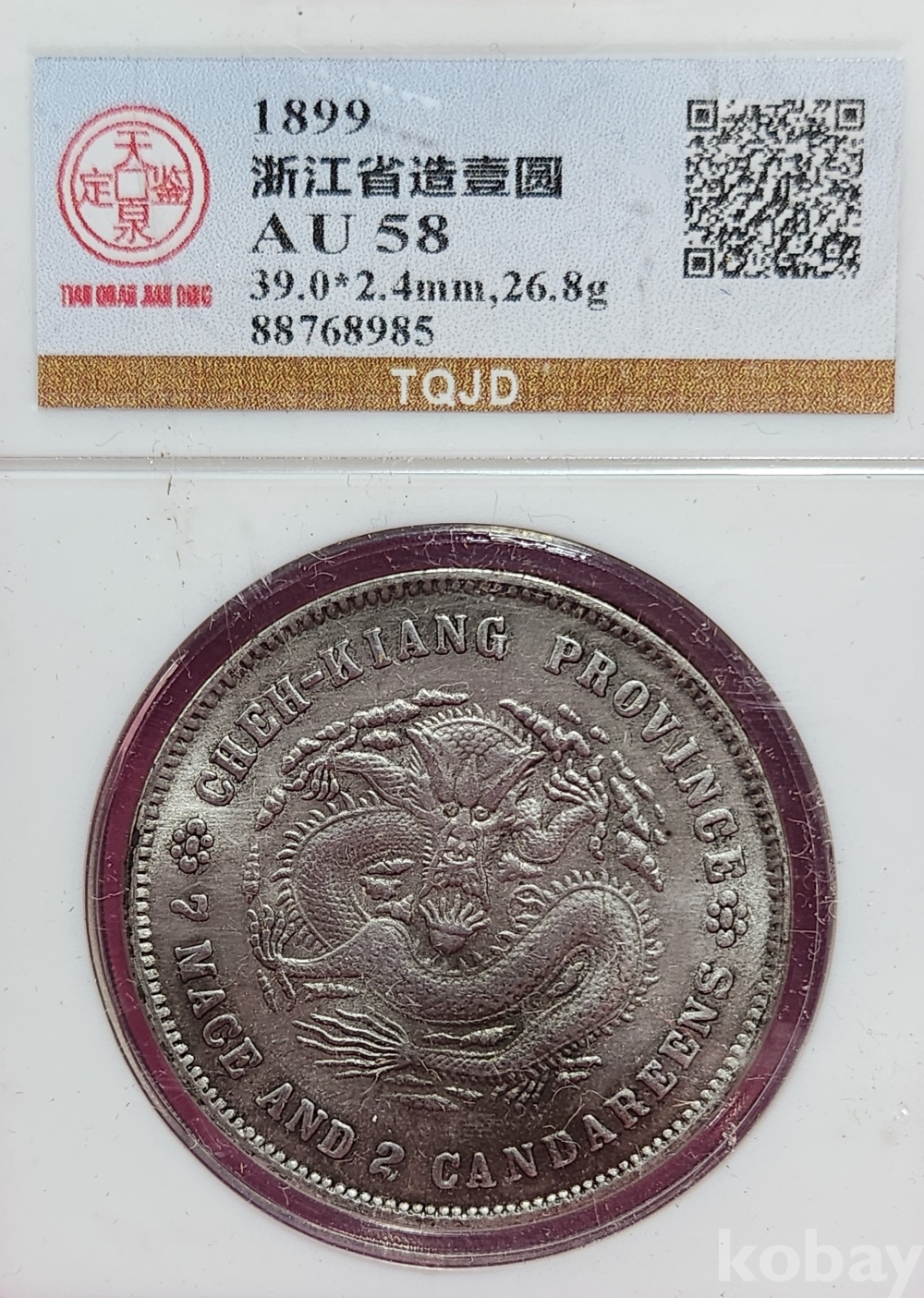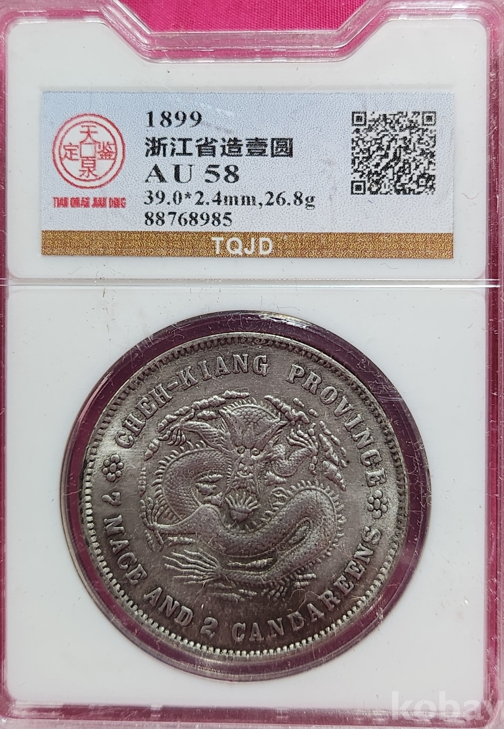 1899년  큐알코드(QR CODE)가 함께하는 은색  광서원보 (光緖元寶)' 화패로 밀봉된 상태입니다,