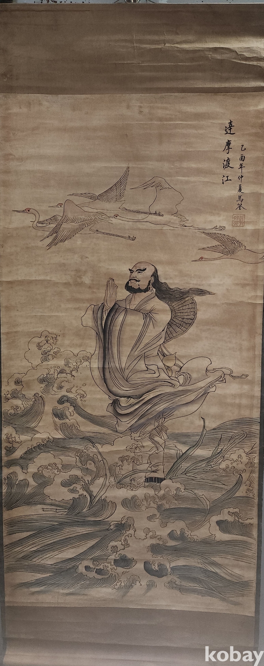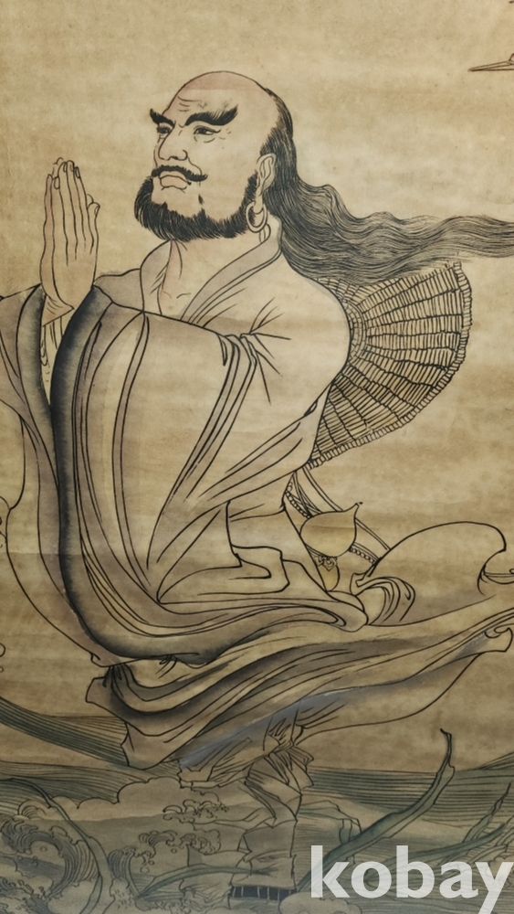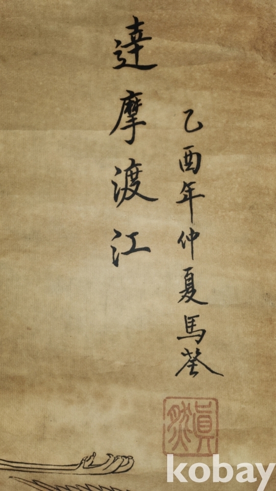 높은 연대를 갖춘 달마도강도(達摩渡江圖) 족자입니다,