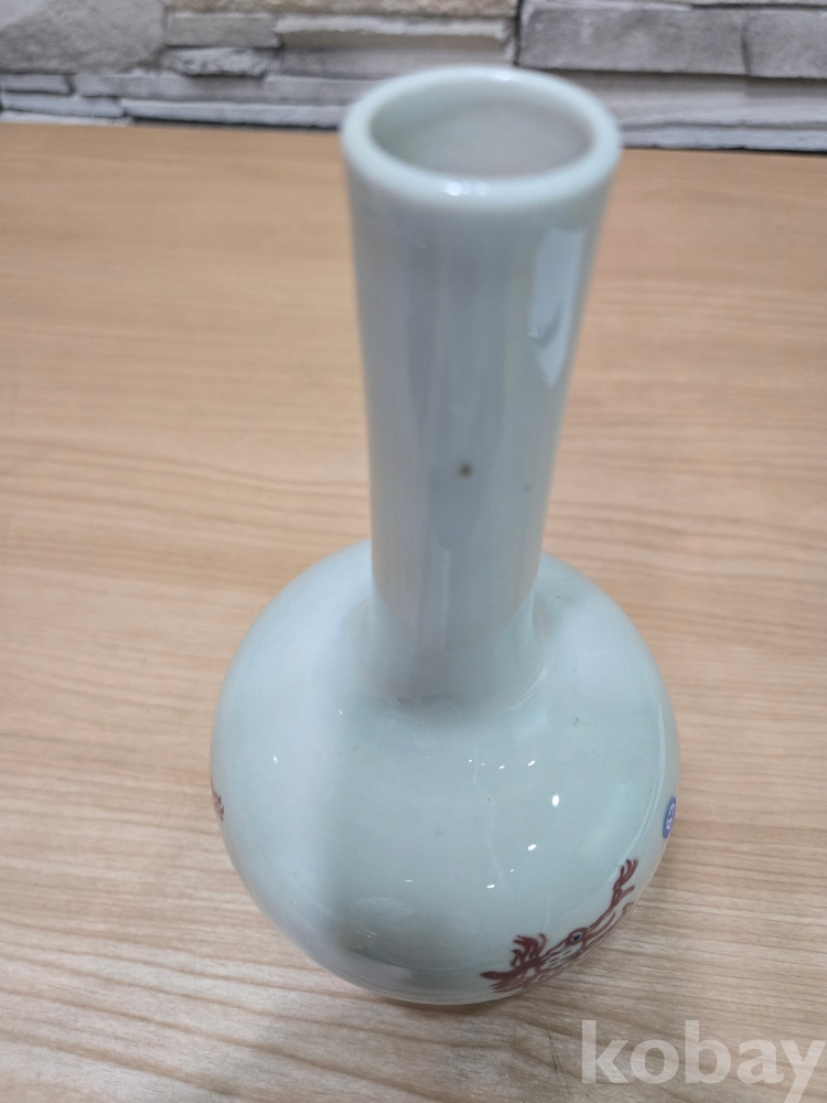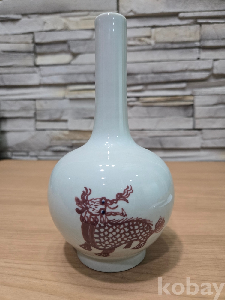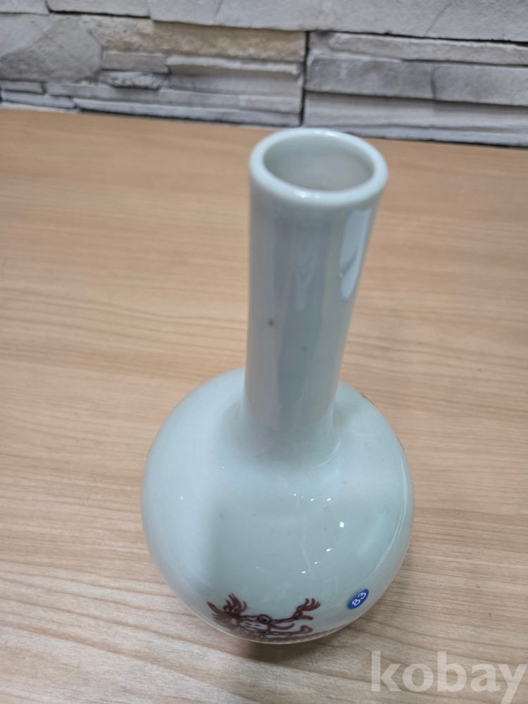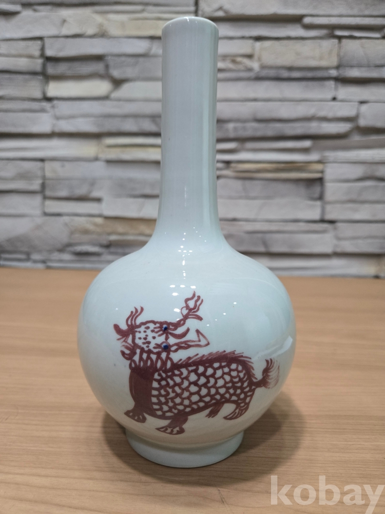 동물 문양이 있는 목이 긴 주병형 도자기 입니다.