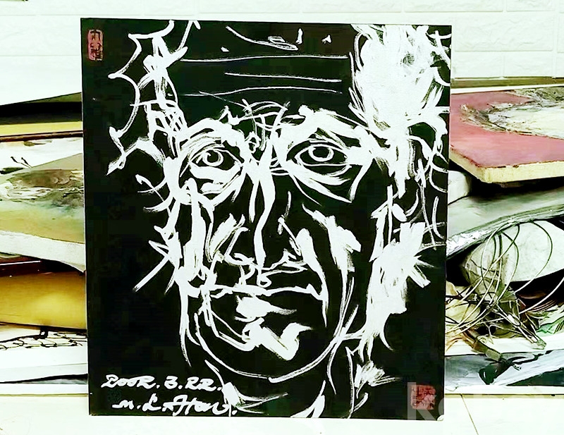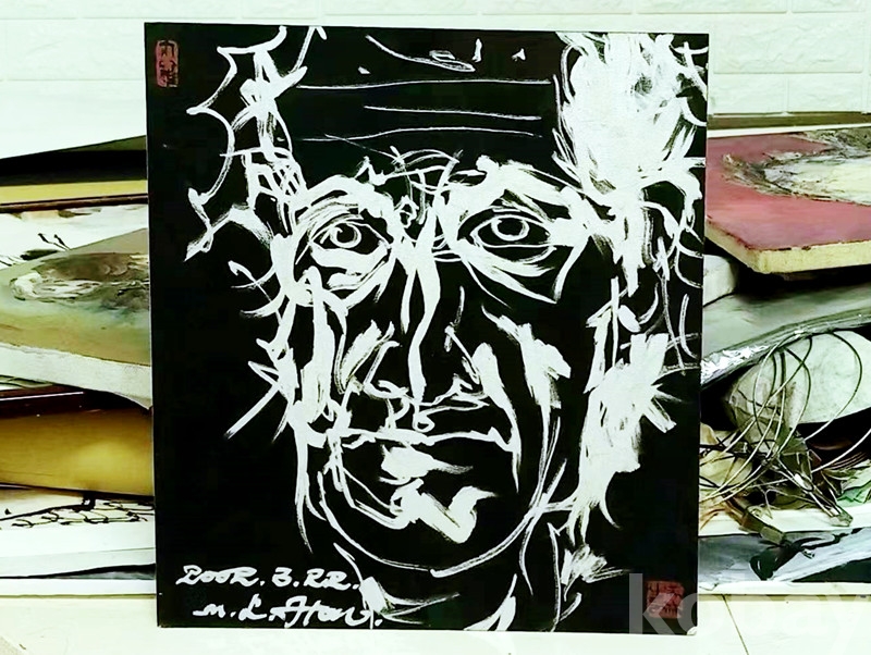 세계 디자인미술 거장 한미림(韩美林) 2002년 추상인물 지판은분유화 자화상