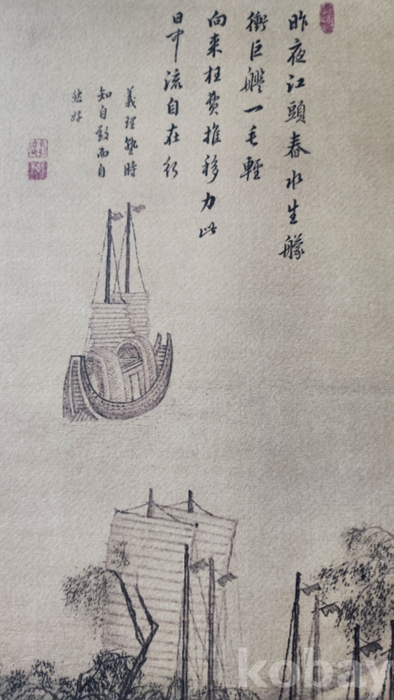 조선시대 단원 김홍도 춘수부함도 (春水浮艦圖) 국립중앙 박물관 소장품 판화입니다,