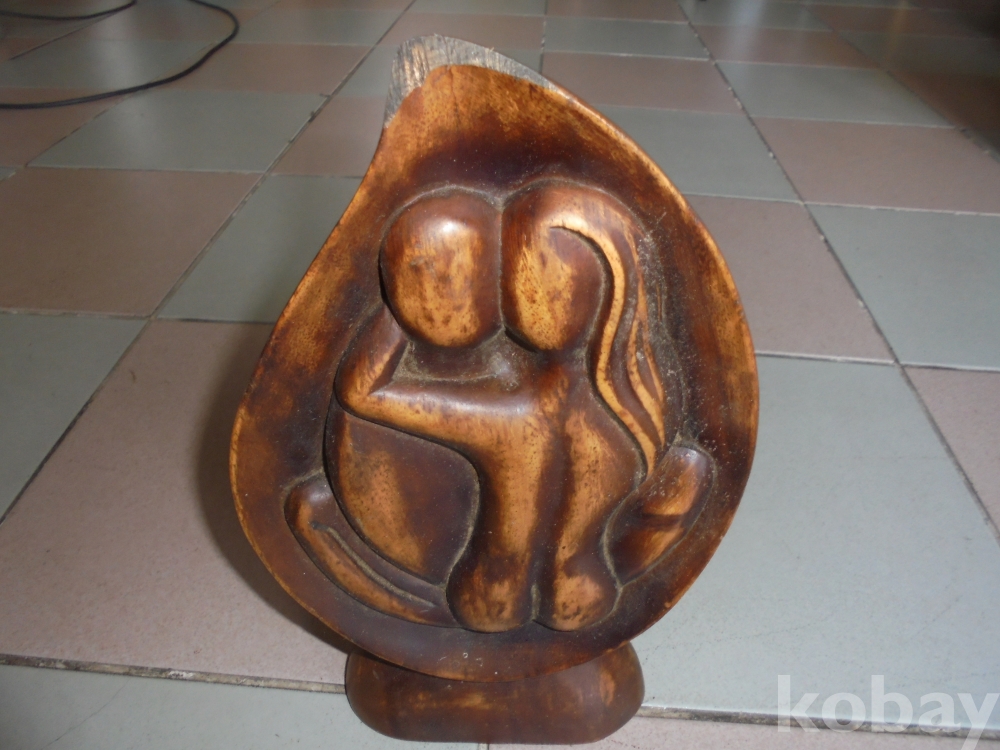 사랑의 하트 복숭아모양에 남여가 사랑하는 조각이되여있는 질좋은 나무로 잘만든 뜻깊은 고색의 사랑하는 나무조각품