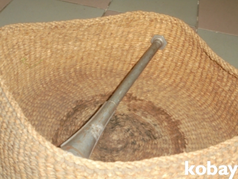 오래되였으며 얼룩진곳 이상없으며 지금은 이솜씨을 못따라가는 섬세하고 고르게 잘맨 고색의 볏짚큰 둥구리