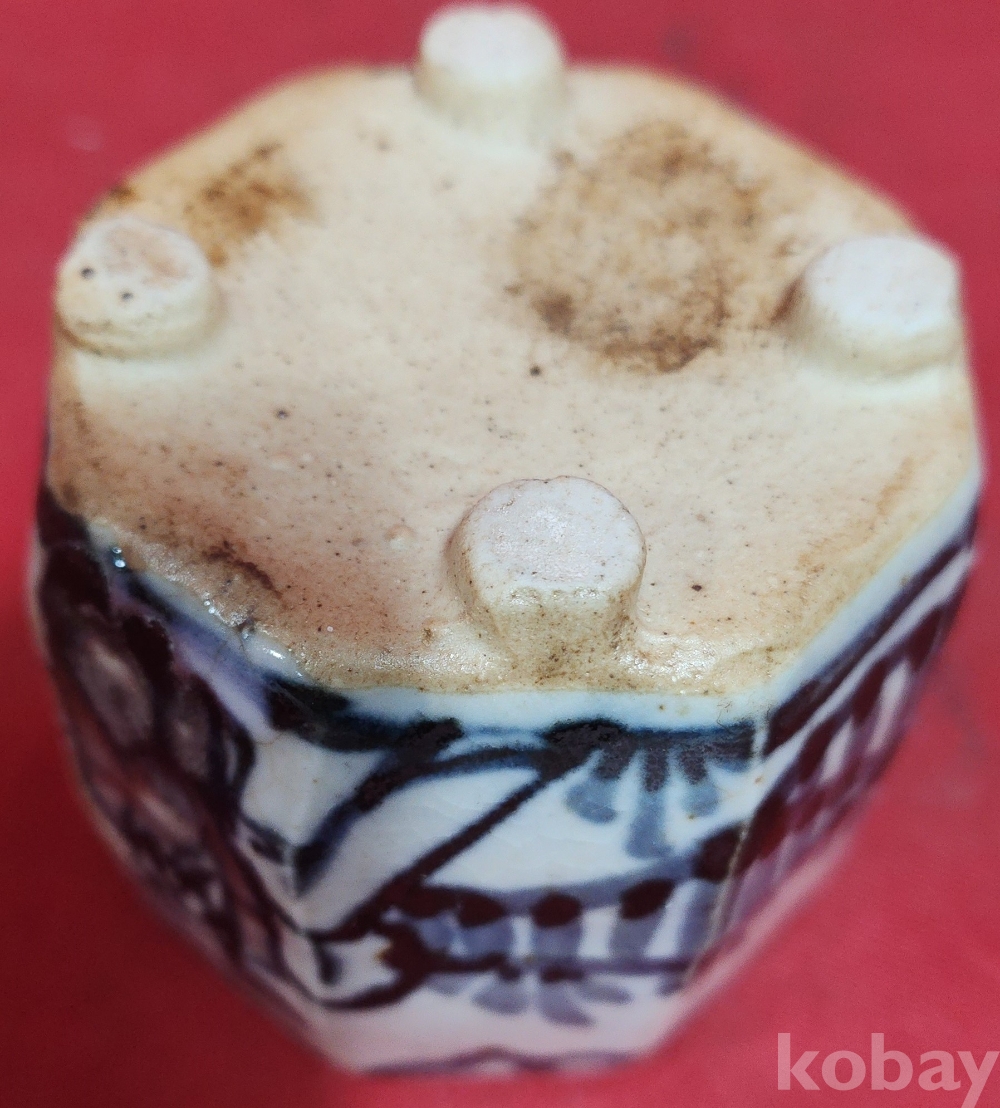 철화백자 인물문양 8각형 사족(四足) 연적입니다,