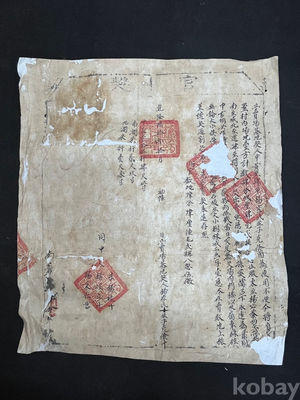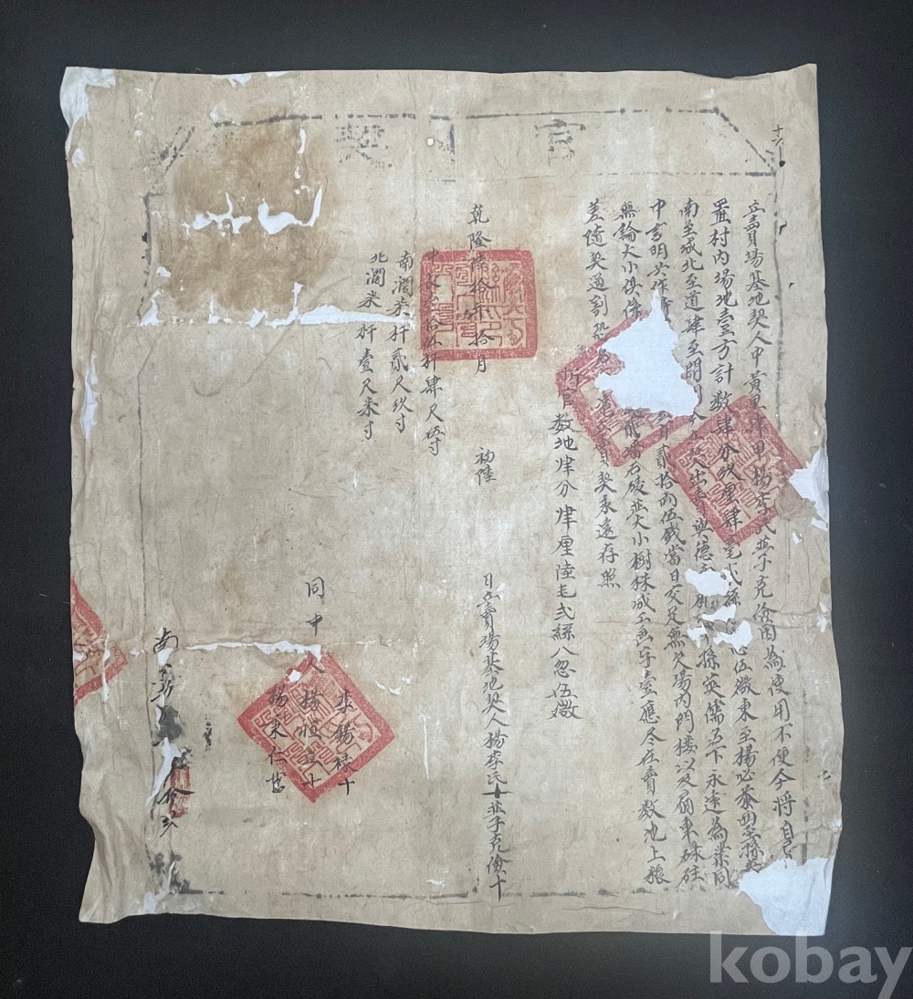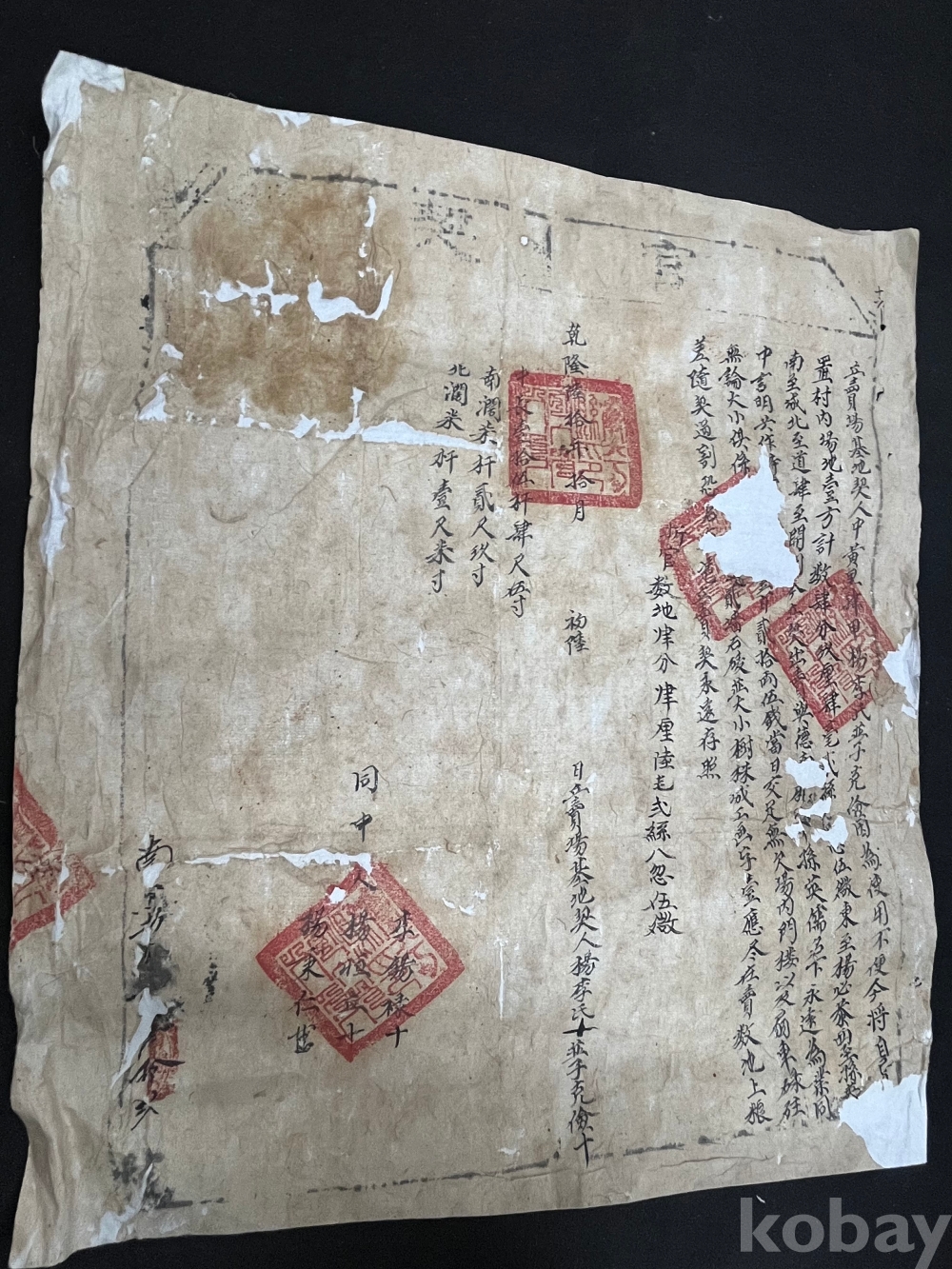 문서의 중앙 부분에 인장이 4개나 크게 찍혀 있으며,
