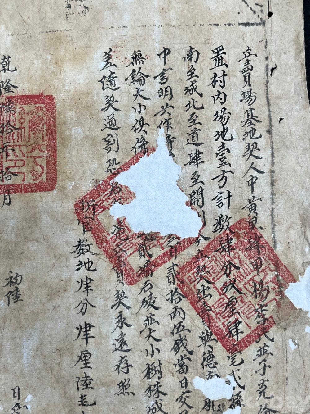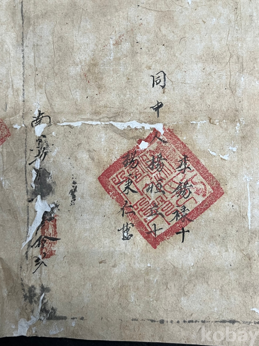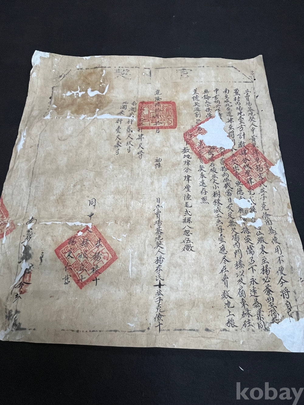 문서의 중앙 부분에 인장이 4개나 크게 찍혀 있으며,