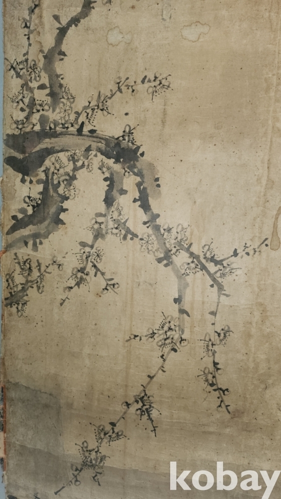 조선시대 장지(將紙)바닥에 수묵화(水墨畵)로 매화(梅花) 그림입니다,