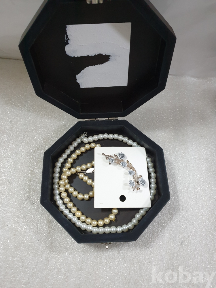 {천원경매} 9-2567 8각 자게 악세사리함 과 펄목걸이, 귀볼걸이1개