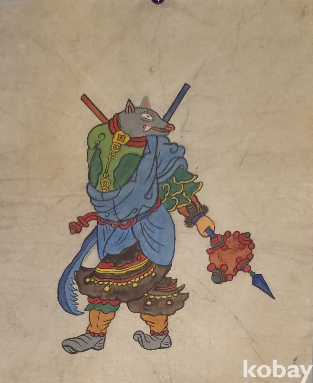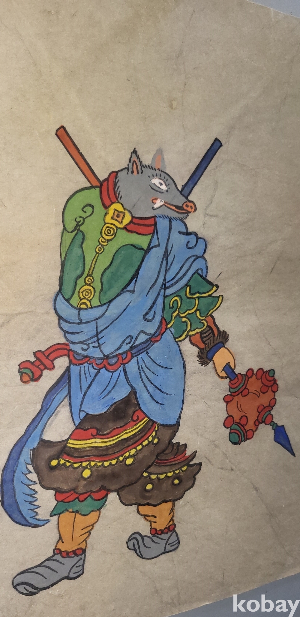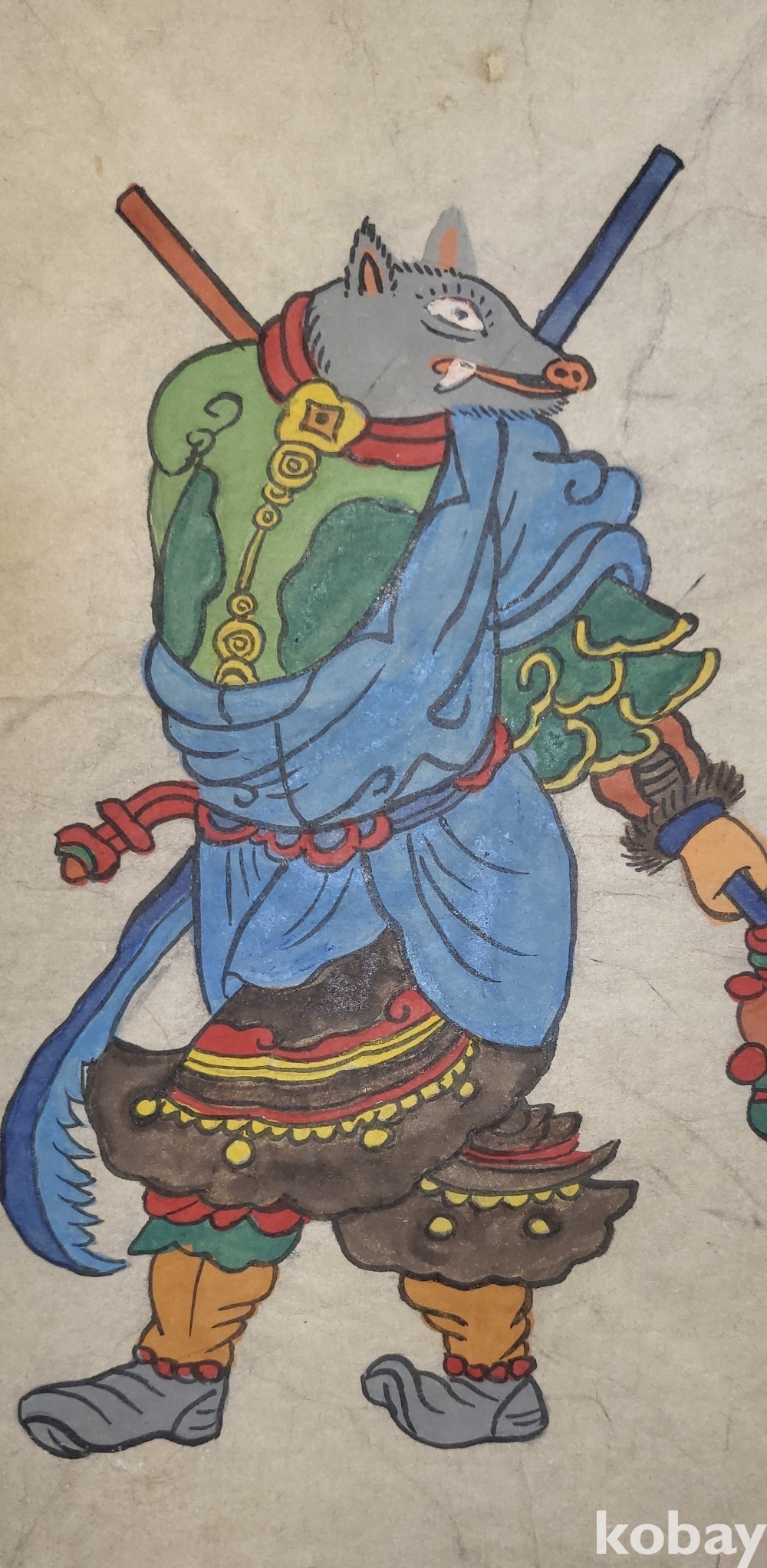 구한말 연대 갖춘 장지 바닥에 당채로 그려진 동물 형상 그림입니다,