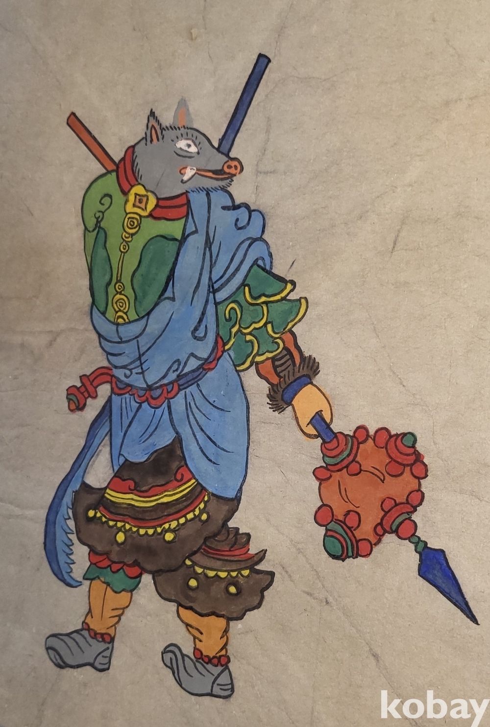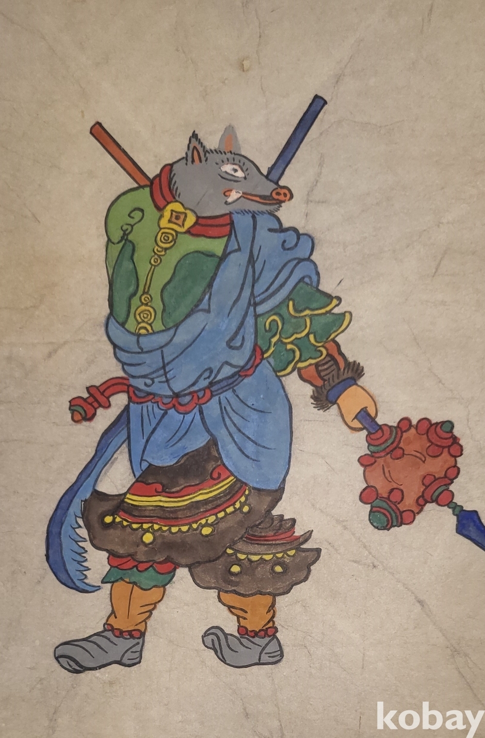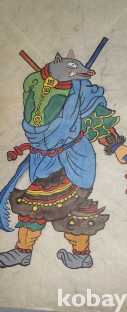 구한말 연대 갖춘 장지 바닥에 당채로 그려진 동물 형상 그림입니다,