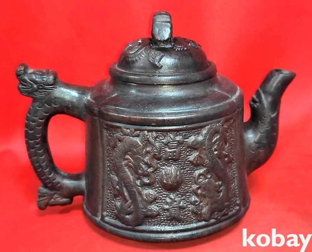 굽에는 음각 관지가 보이는 쌍용(雙龍) 부귀(富貴)문양 자사 큰 주전자입니다,