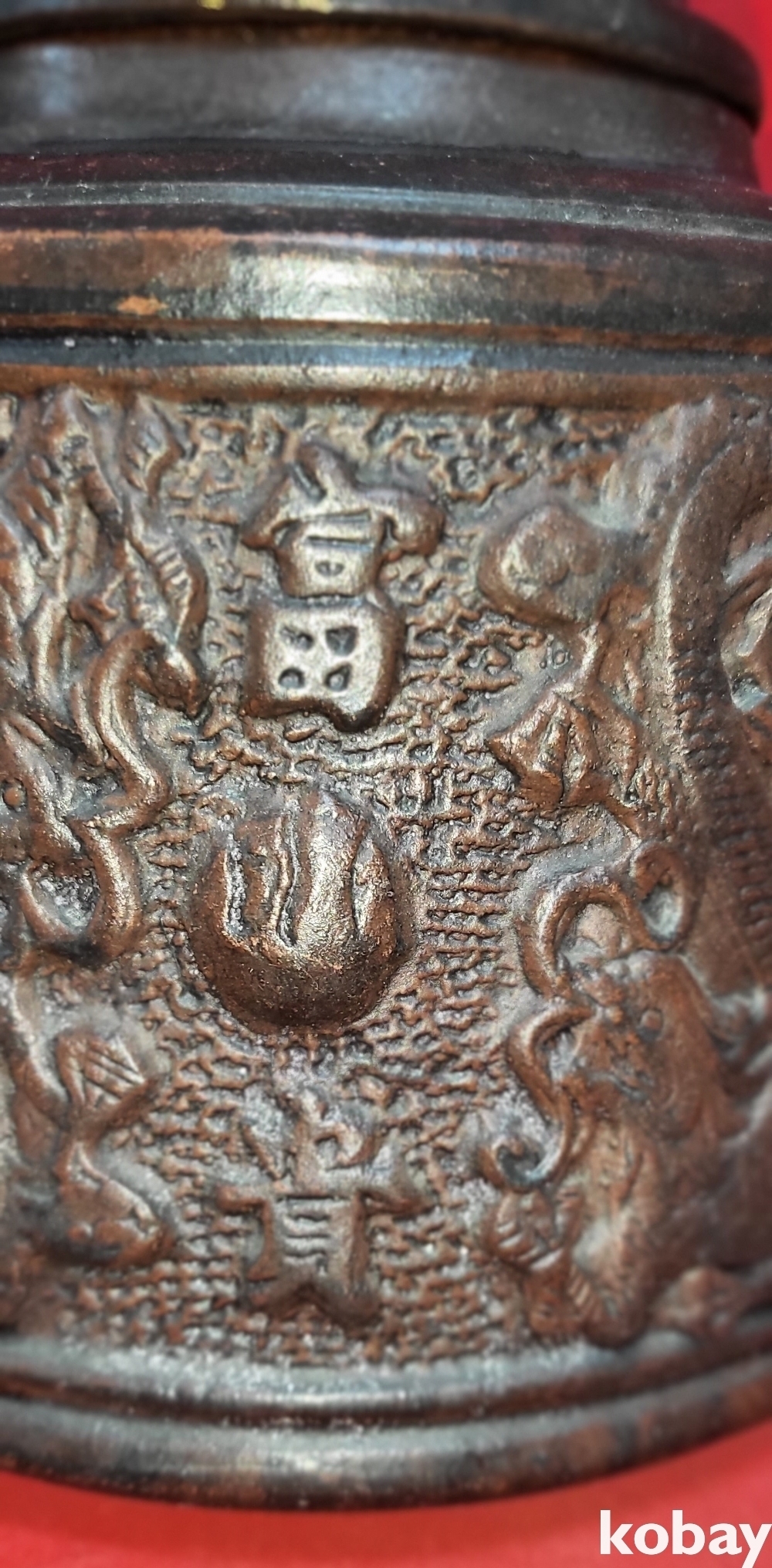 양면에 같은 쌍용(雙龍)문양이 양각으로 있으며 뚜껑에도 두마리의 용이 도안으로