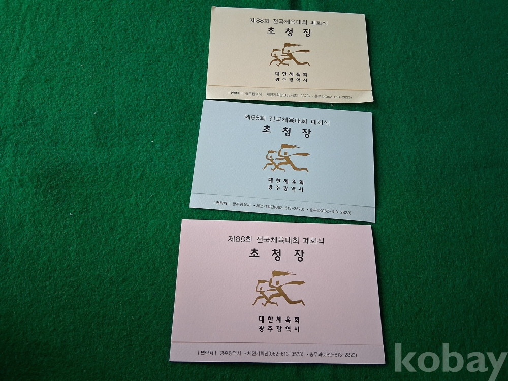 2007 제88회 전국체육대회 폐회식 색상이 다른 초청장 3매