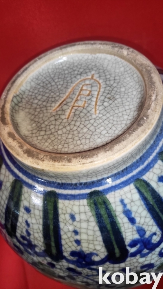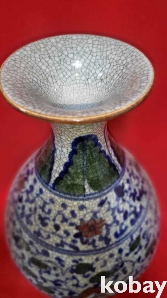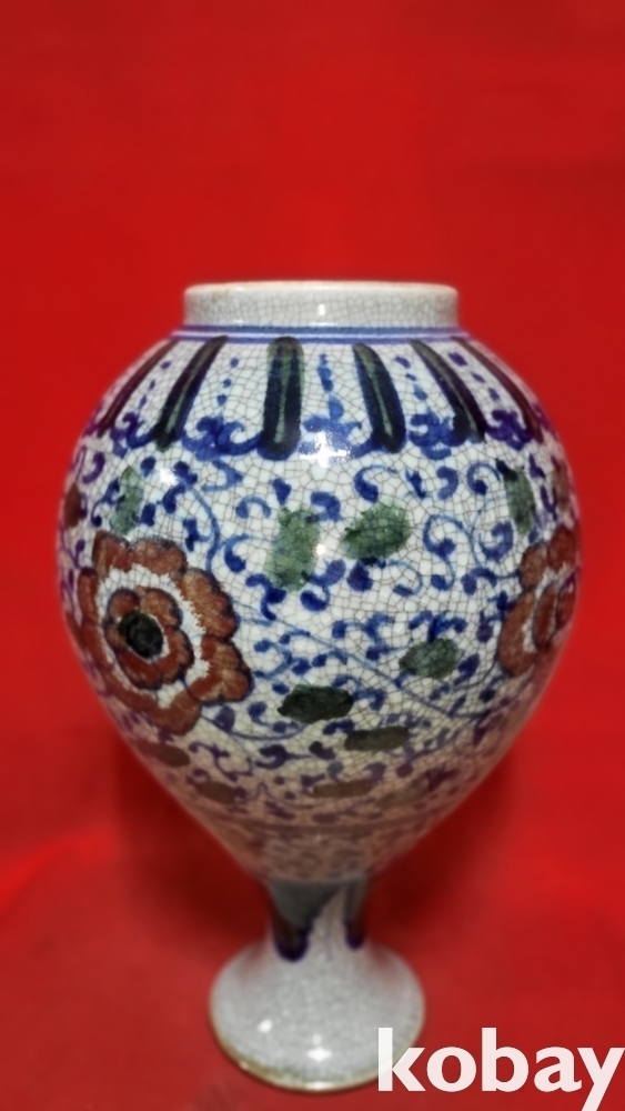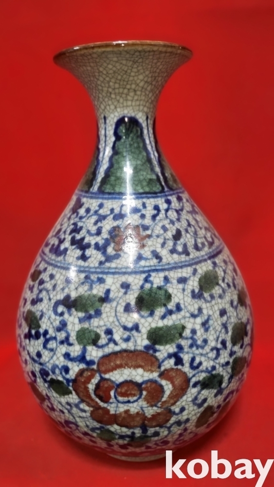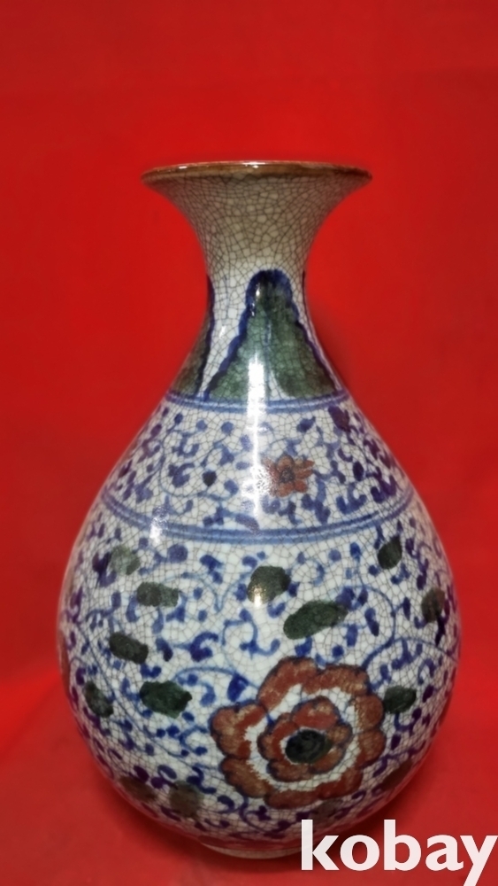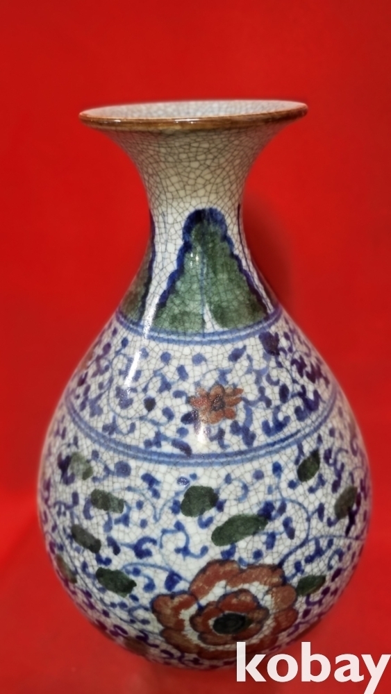 官 관지 보이는 청화 유리홍 화훼문 큰병입니다,