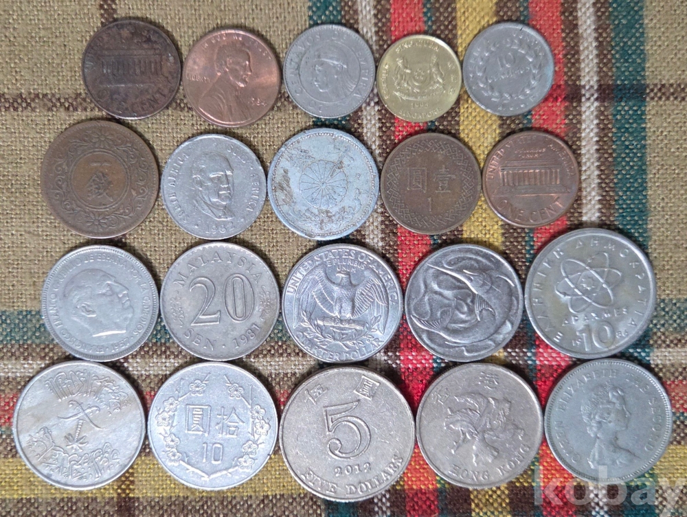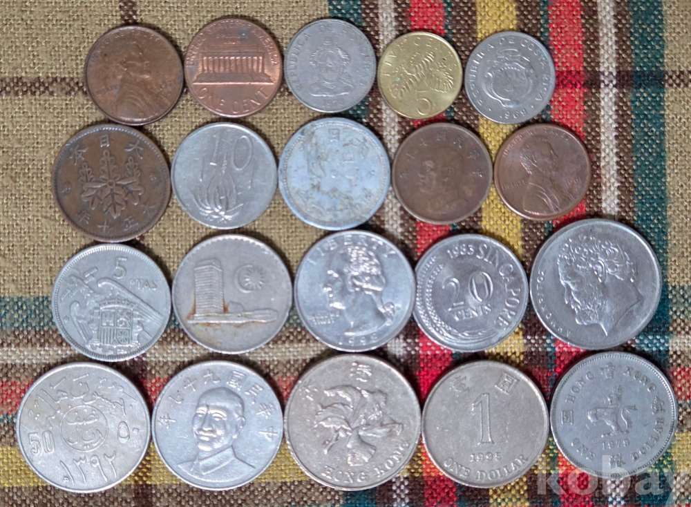 20점의 외국 동전들입니다