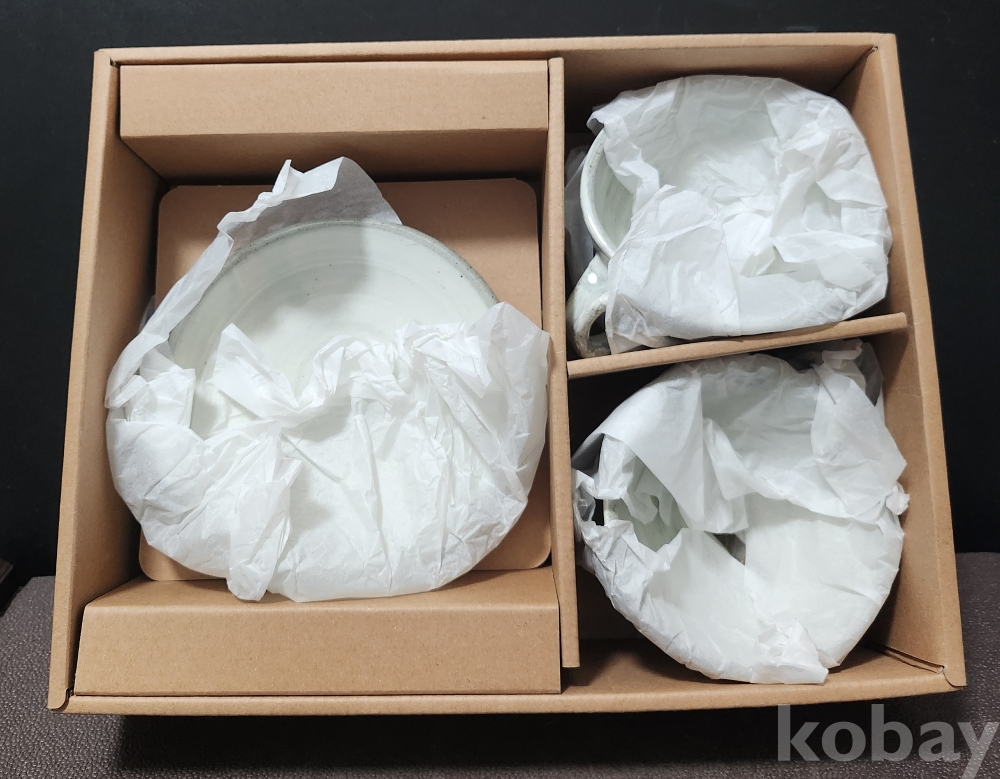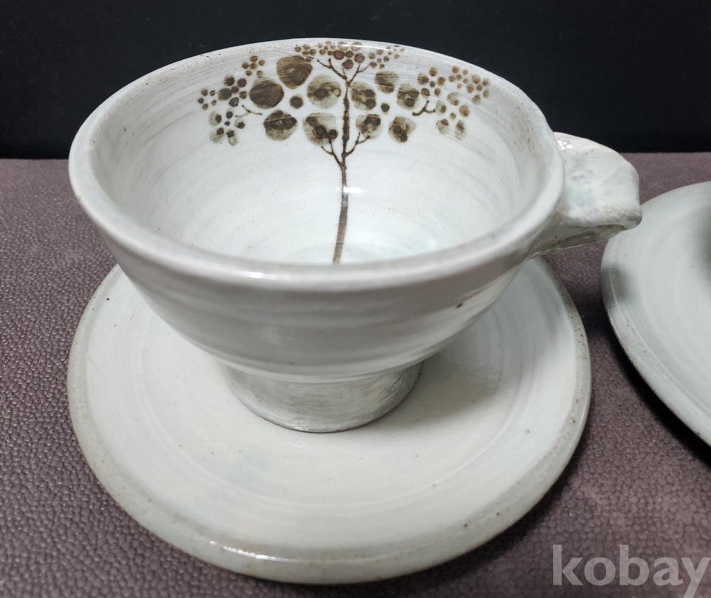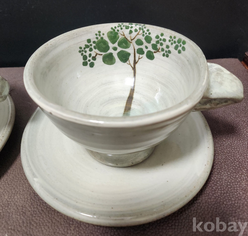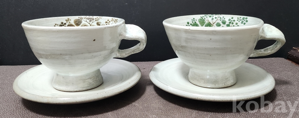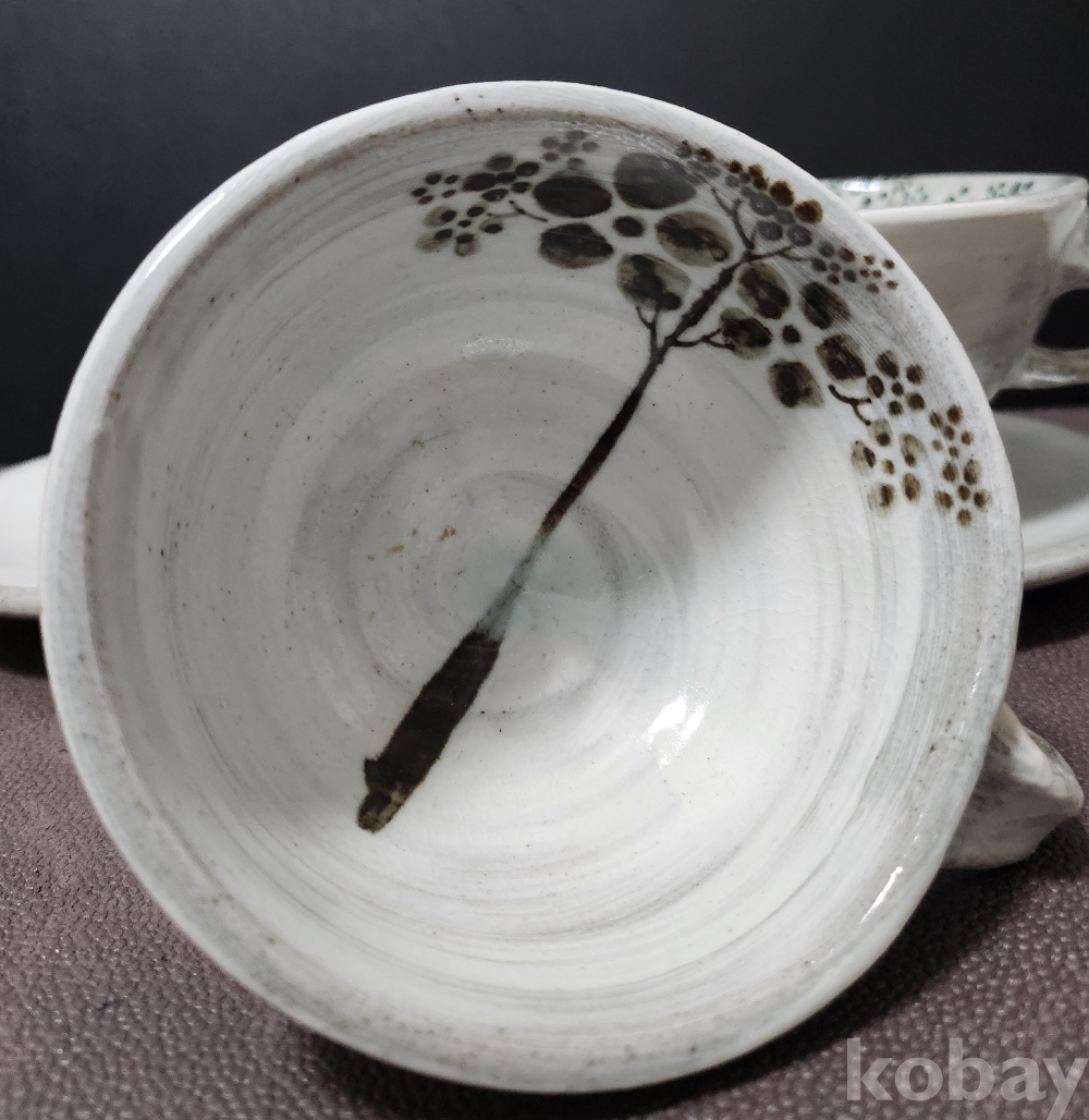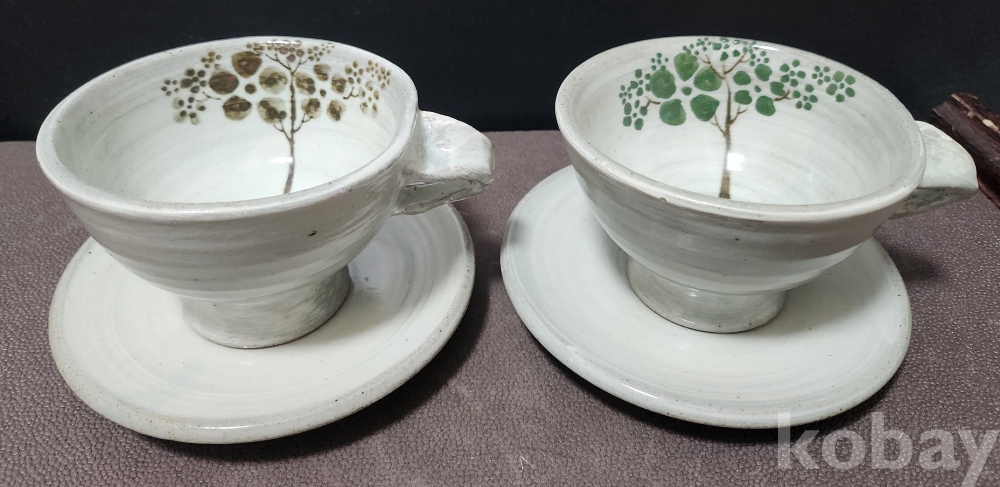 < 도예가 전시 출품 作 > 분청 커피잔 세트 < 미사용 박스 완비 >