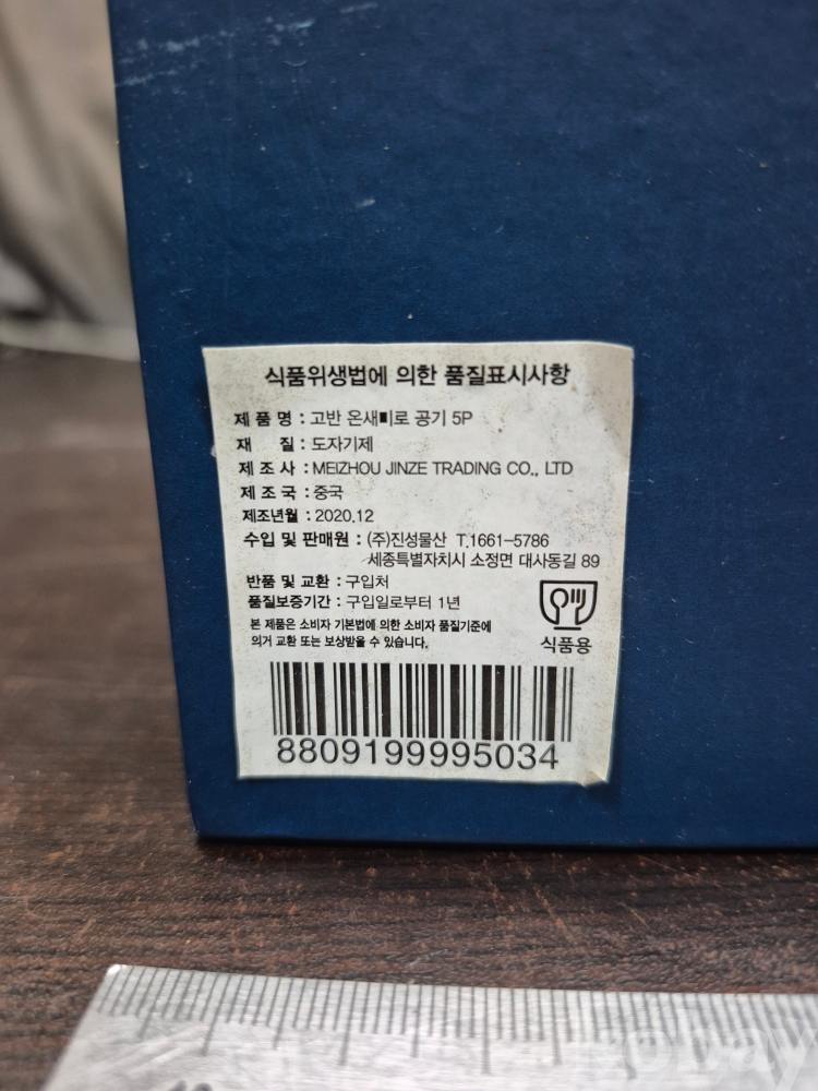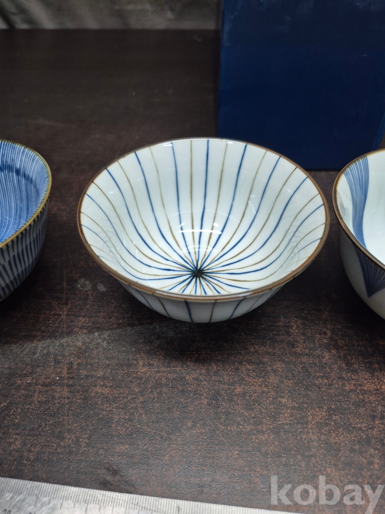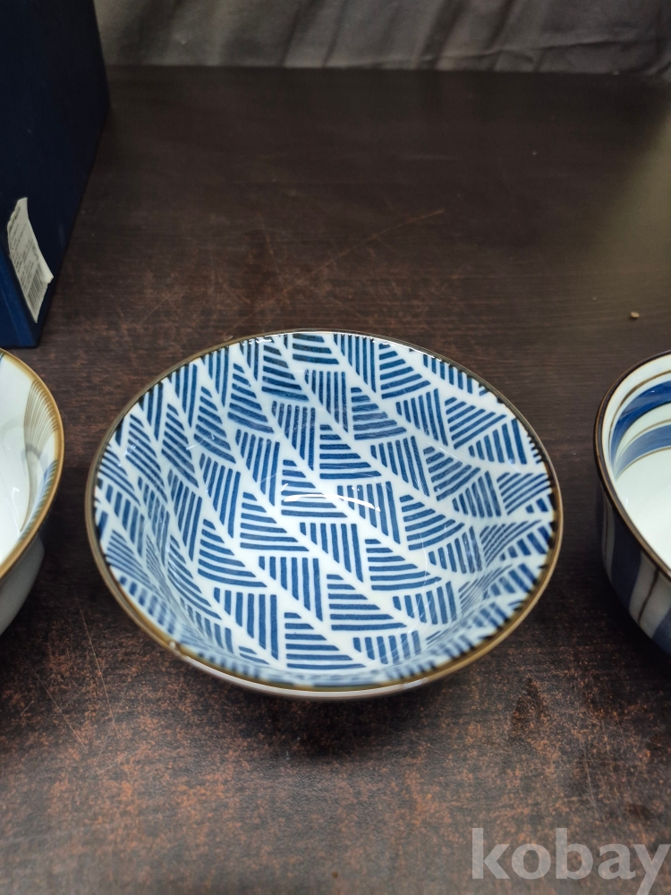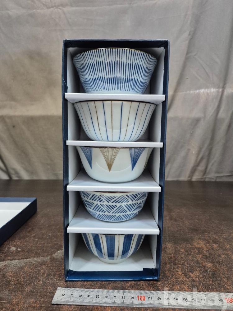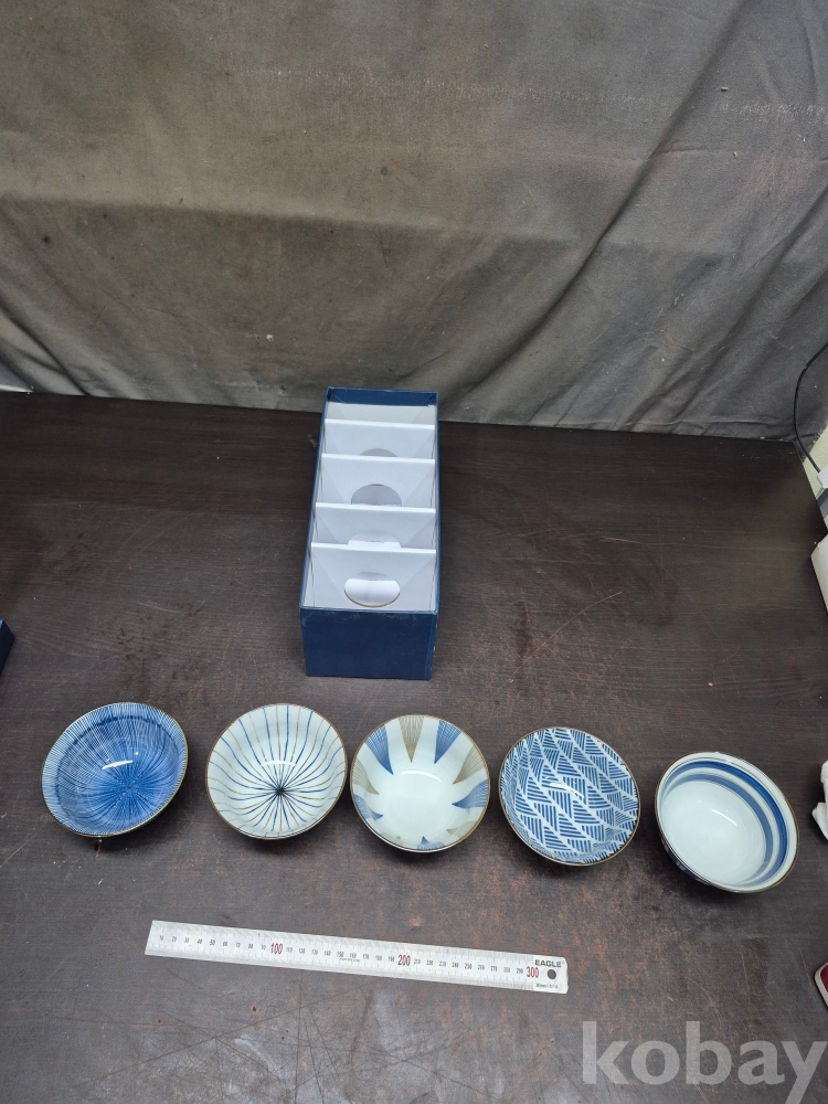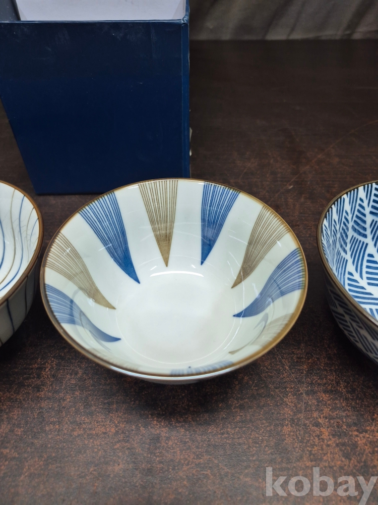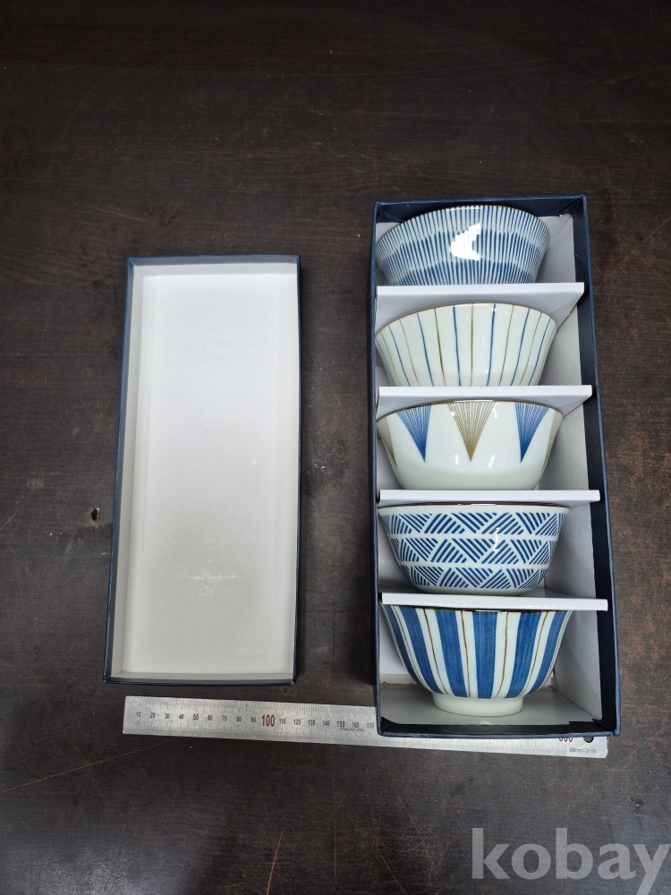 1990년대 고반 온새미로 도자기 공기 5P용 미사용품 12.5*30*12