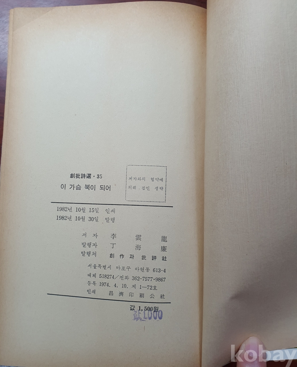 이운용 시집,창작과 비평사,1982년 초판,상태는 양호 깨끗한 시집