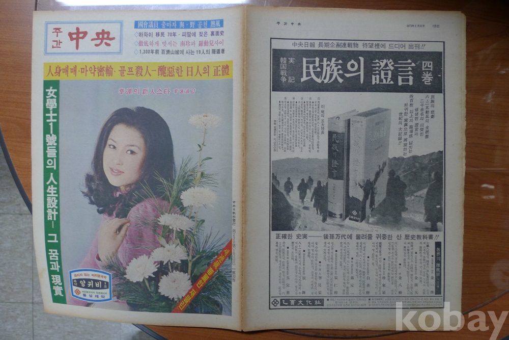 1973년 주간중앙 잡지 - 표지모델 영화배우 이연숙 -