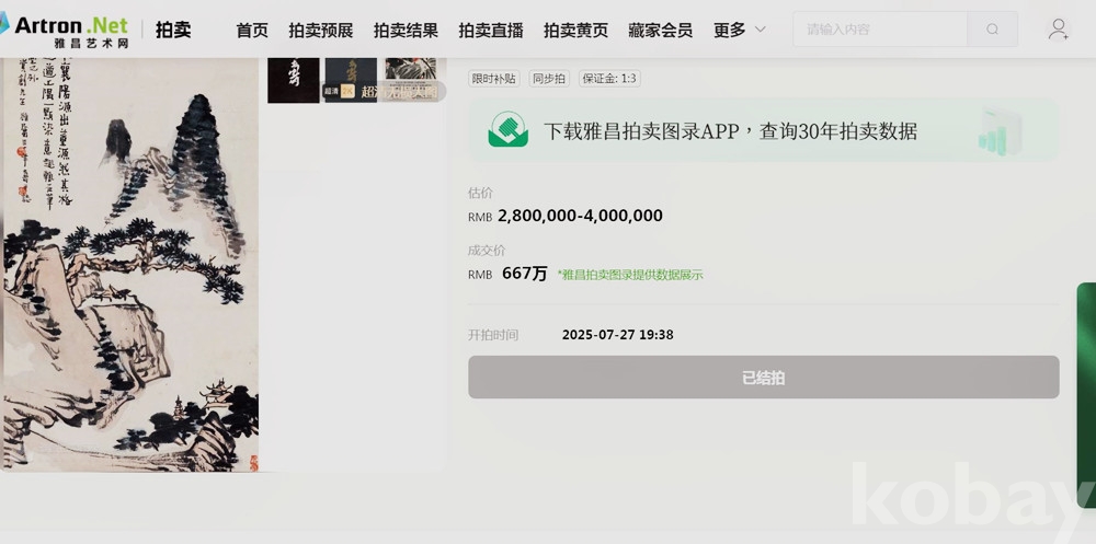 중국 최대 최고의 미술품 정보플랫폼 아창미술망(아트론넷) 기록입니다.
