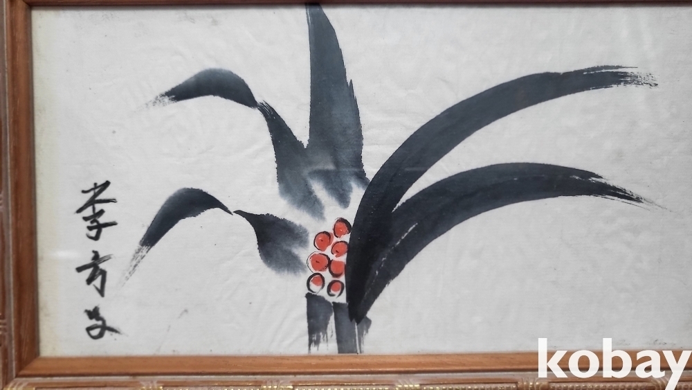 이방자 수결이 보이는 종이에 채색한 그림입니다,
