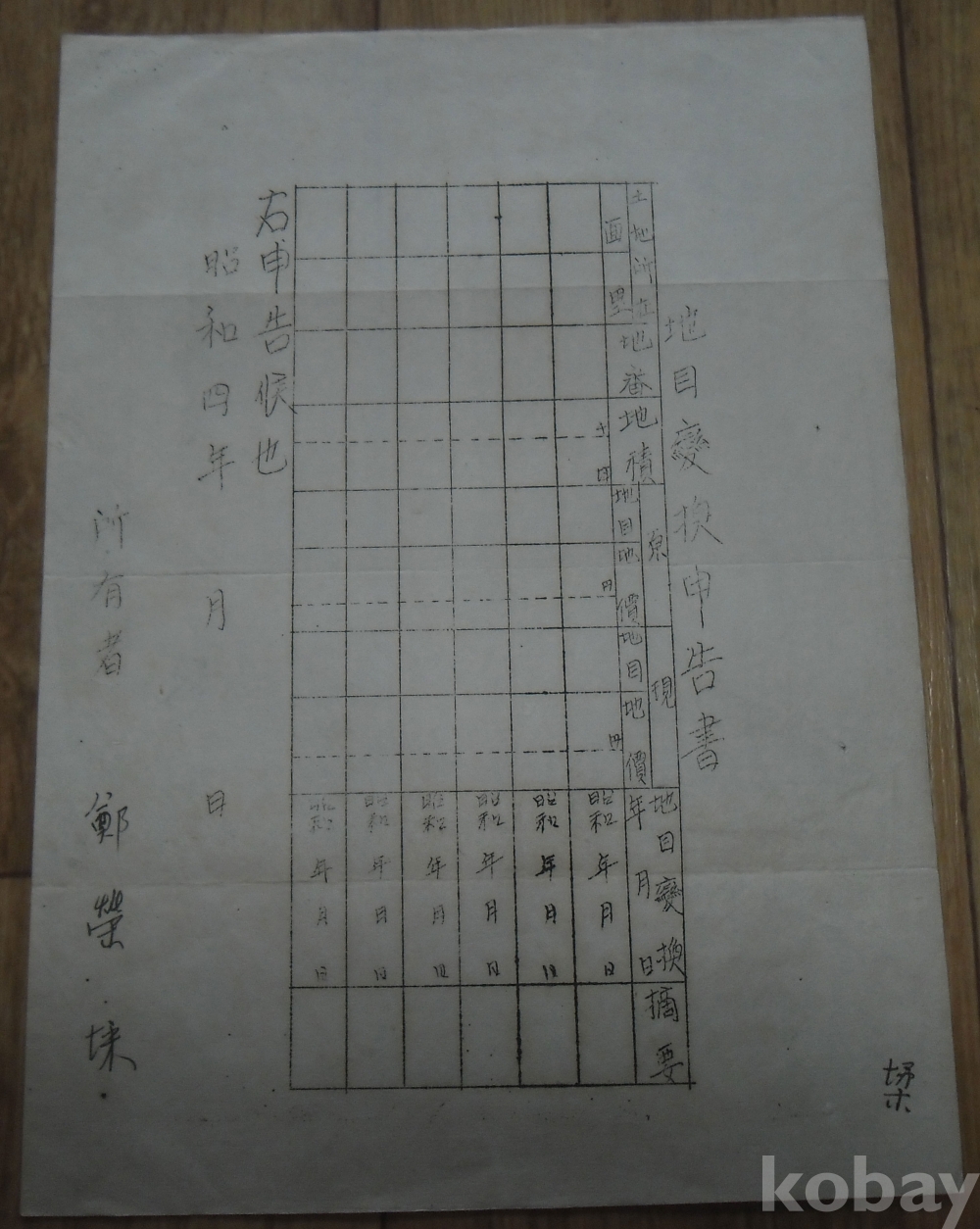 일제강점기 미사용 서식: 지목변환신고서(양평군)