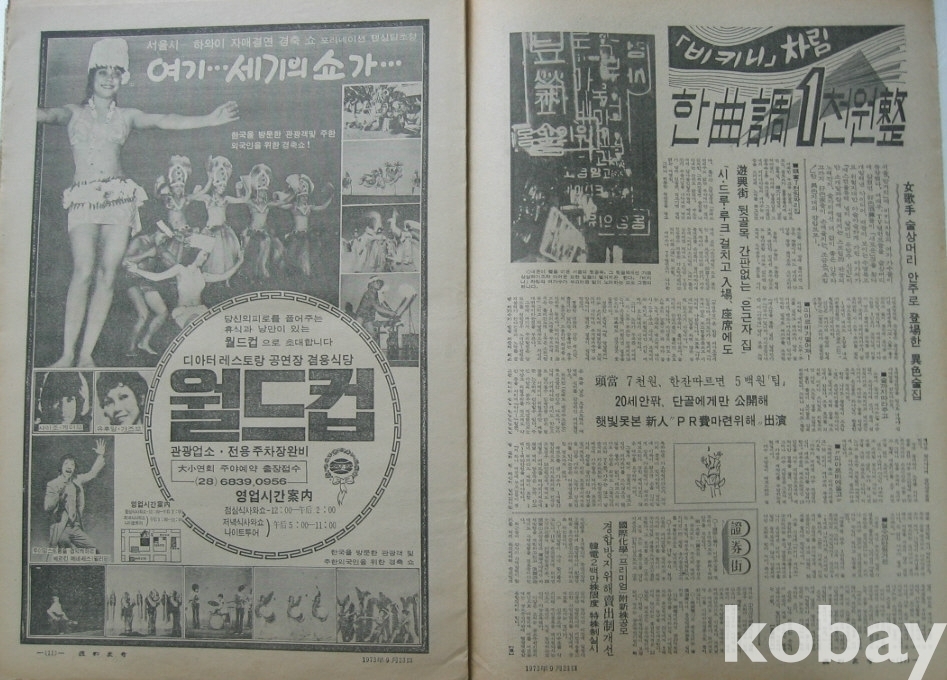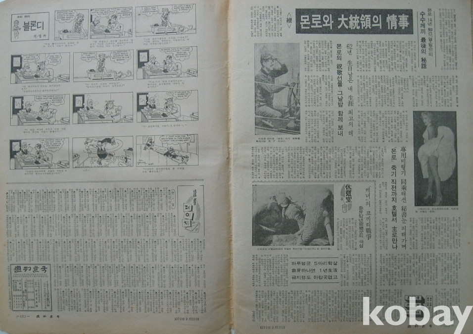 1973년 주간한국 잡지 - 표지모델 린시스터 김영자 -