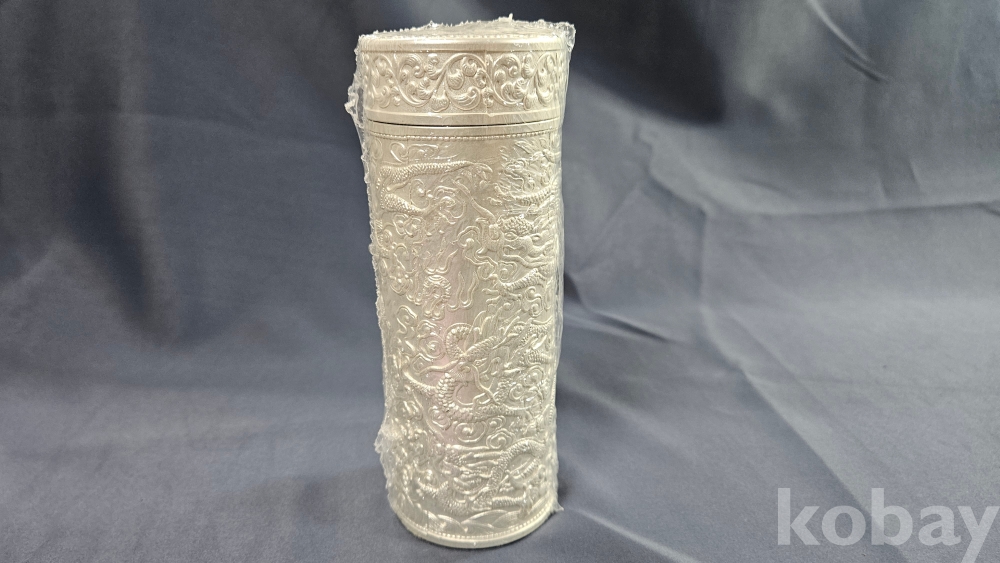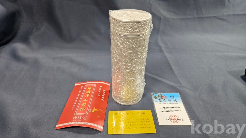 밑굽에 銀이라 찍혀져있는 은색 미사용 텀블러 종류로 보여집니다.