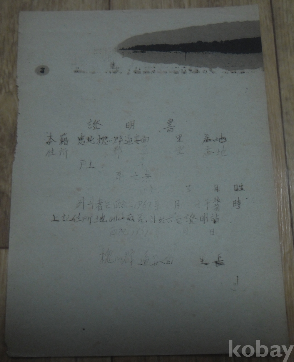 미사용 서식: 1961년 괴산군 증명 자료