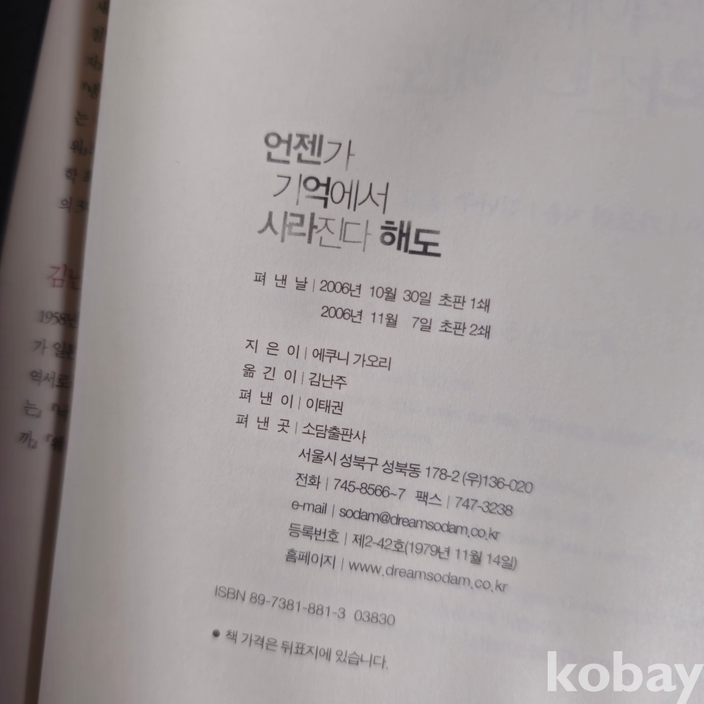 (천원경매) (((서적))) 언젠가 기억에서 살라진다 해도 - 에쿠니 가오리 지음 (하드카바) (2006년 초판 2쇄)